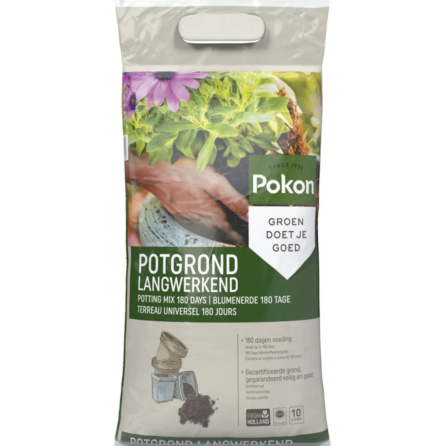 Pokon Potgrond Langwerkend is verkrijgbaar in 10 l en 40 l.