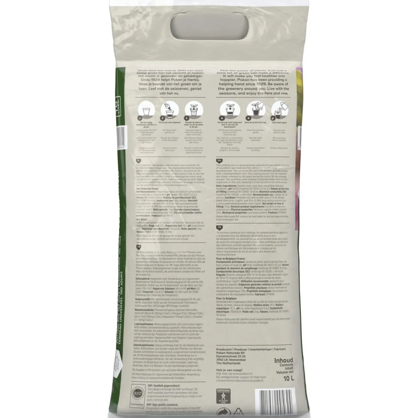 De Potgrond Langwerkend van Pokon is een ideaal basisproduct voor iedere plantenliefhebber. De potgrond bevat uitsluitend hoogwaardige, natuurlijke grondstoffen, denk hierbij aan turfstrooisel, tuinturf, kalk en meststoffen. Door deze potgrond te gebruiken wordt het water goed vastgehouden en kunnen je planten goed de voeding opnemen. Aan de potgrond is een langwerkende meststof toegevoegd die je planten tot wel 6 maanden van voeding voorziet.