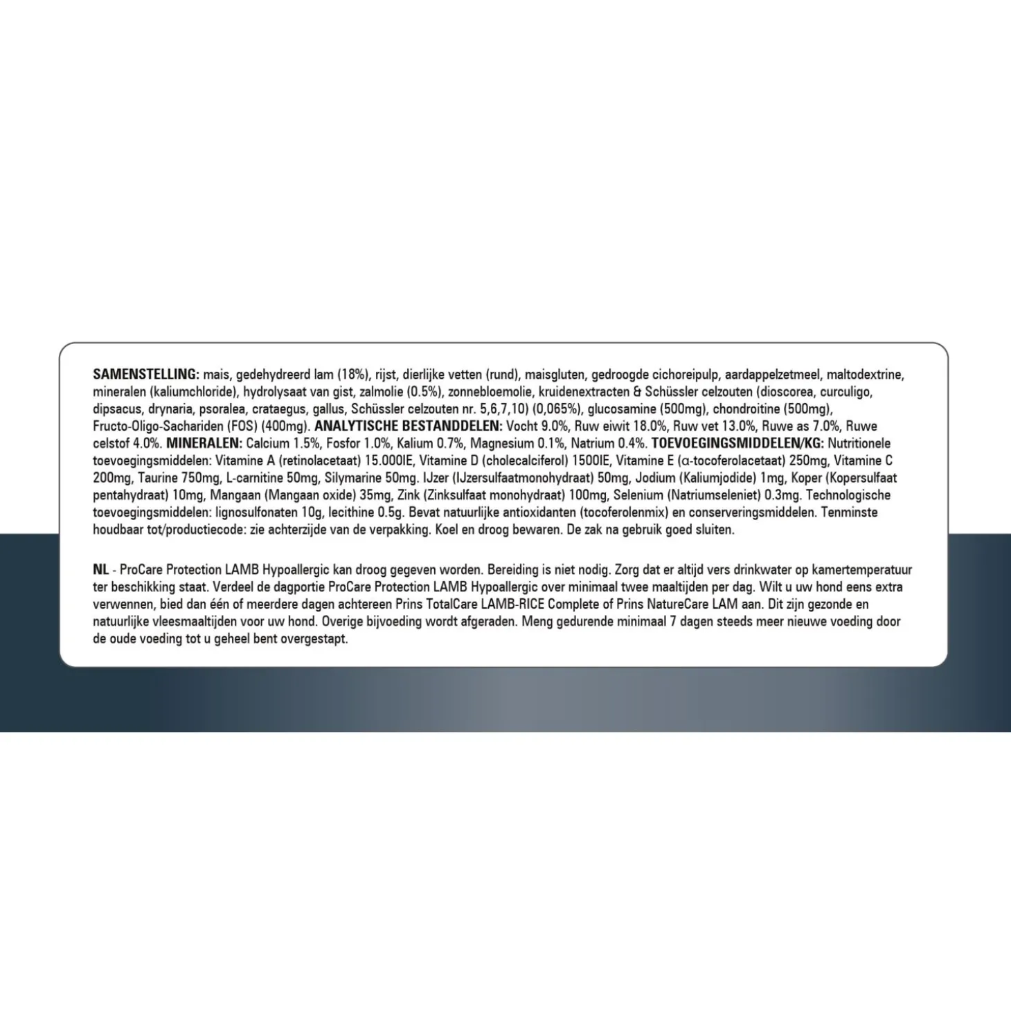 Prins ProCare Protection Lamb Hypoallergenic is verkrijgbaar in 3 kg en 15 kg.