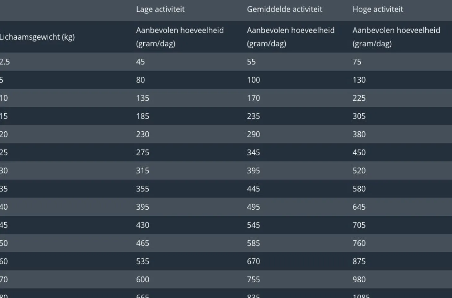 | Contentgroep | Dieetvoer |