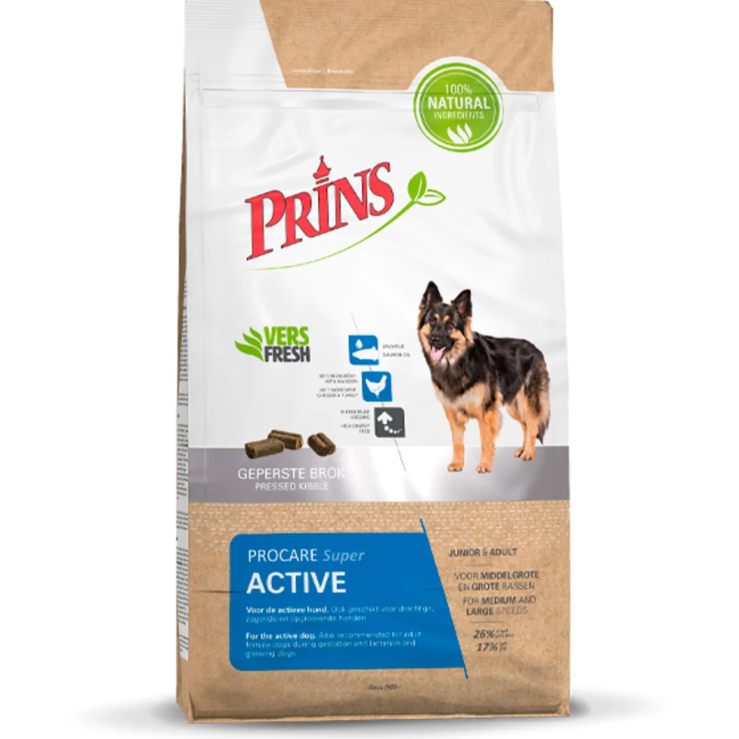 Prins Procare Super Active is een hoogwaardige voeding speciaal voor opgroeiende en actieve honden die in de kracht van hun leven zijn.