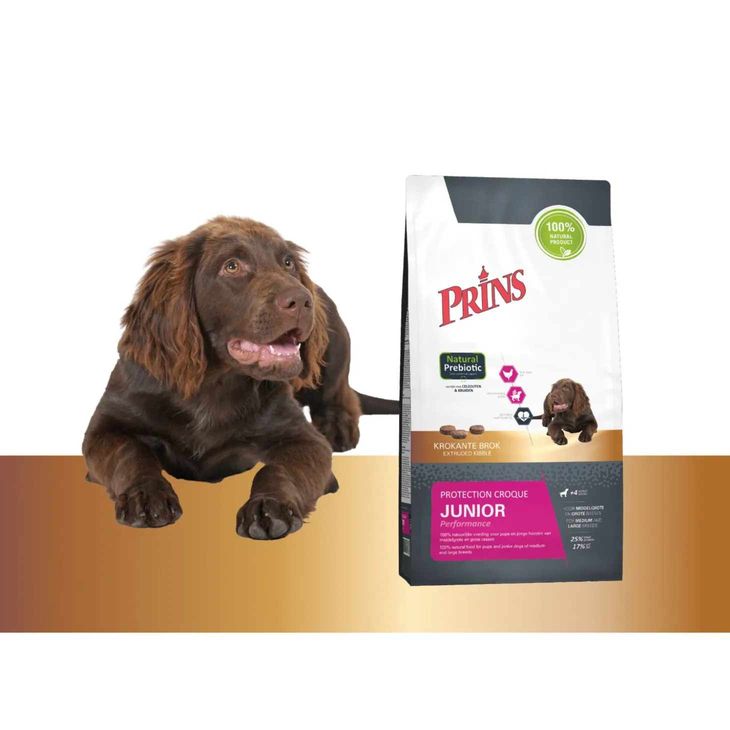 Een gezonde groei van lichaam en geest, begint bij het kiezen van de juiste voeding. Prins ProCare Protection Croque Junior Performance is een 100% natuurlijke, krokante brokvoeding voor pups en jonge honden van 4 weken tot 12 maanden oud van (middel)grote rassen.