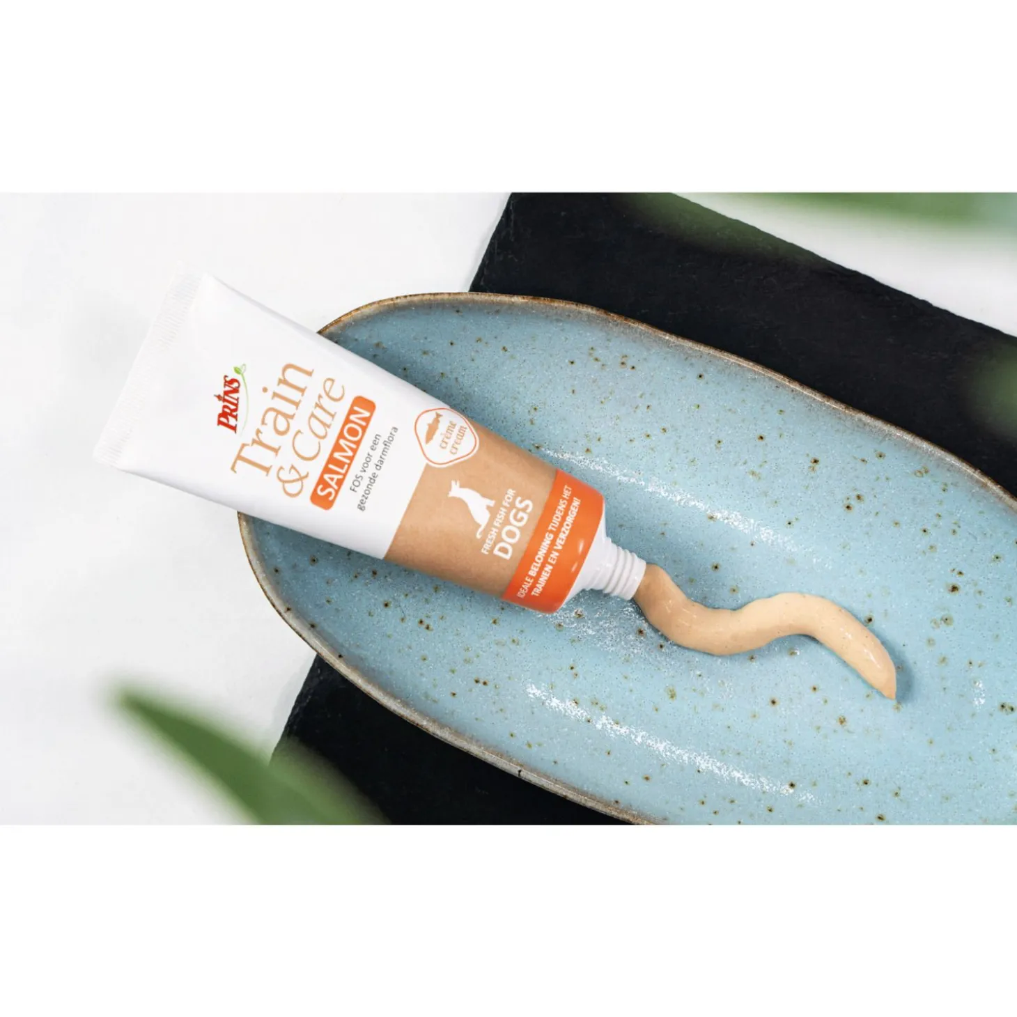 Wanneer je je hond wilt trainen, is het belangrijk dat hem een lekkere beloning te wachten te staat voor het uitvoeren van jouw commando’s. Train & Care Salmon van Prins is de ideale beloning tijdens het spelen, verzorgen en trainen. Deze variant is rijk aan verse zalm.