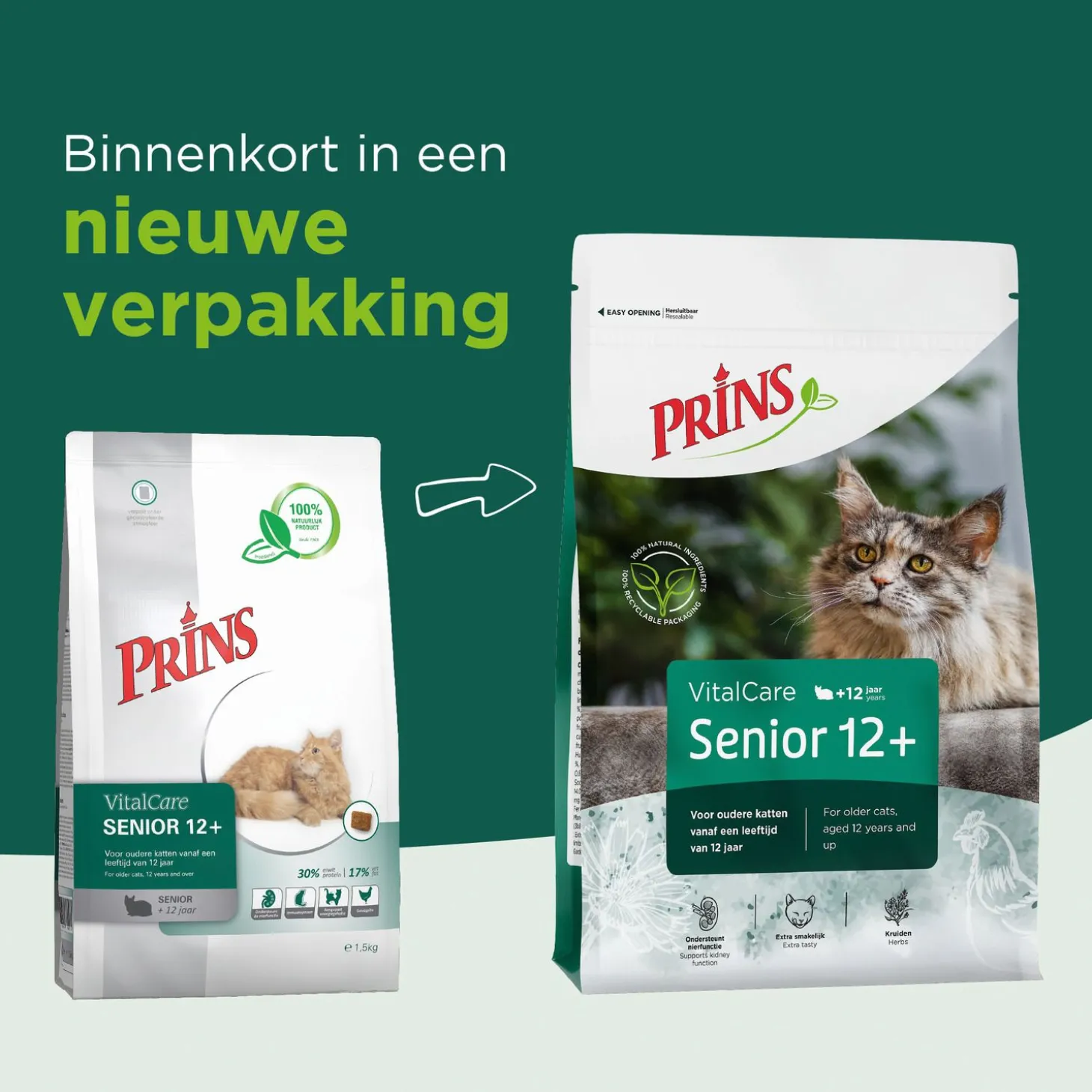 Prins VitalCare Senior 12+ is verkrijgbaar in 1,5 kg en 5 kg.