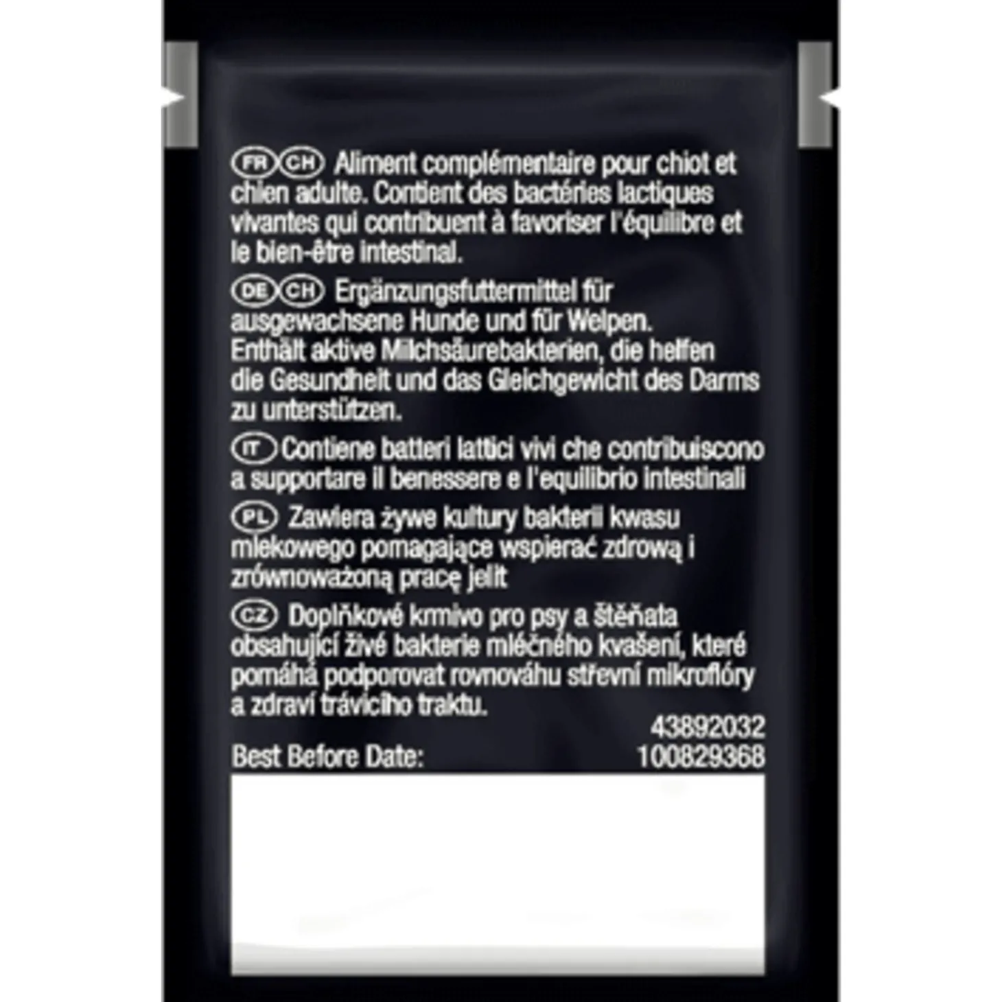 - Bewezen dat het de intestinale gezondheid en microflorabalans helpt bevorderen.Bevat de melkzuurbacterie Enteroccus faecium (SF 68), in een concentratie waarvan is aangetoond dat het de intestinale gezondheid en microflorabalans bij honden helpt ondersteunen.