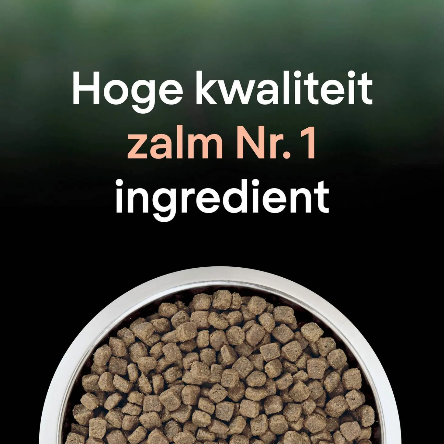 | Samenstelling | Samenstelling:Zalm (18%), Gedroogd gevogelte-eiwit, Rijst, Maïseiwitmeel, Tarwegluten, Tarwevoerbloem, Cellulose, Varkensvet, Maïs, Mineralen, Gedroogd ei, Digest, Eigeelpoeder (0,6%), Gist, Visolie. |