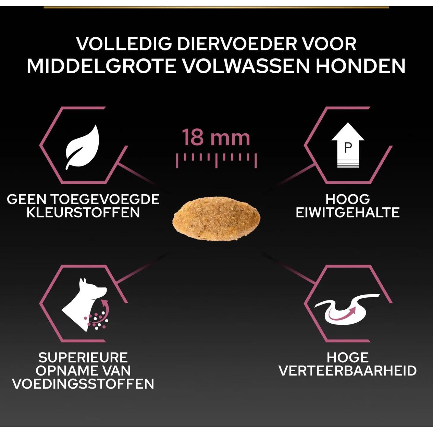 - Geschikt voor volwassen honden van medium rassen.