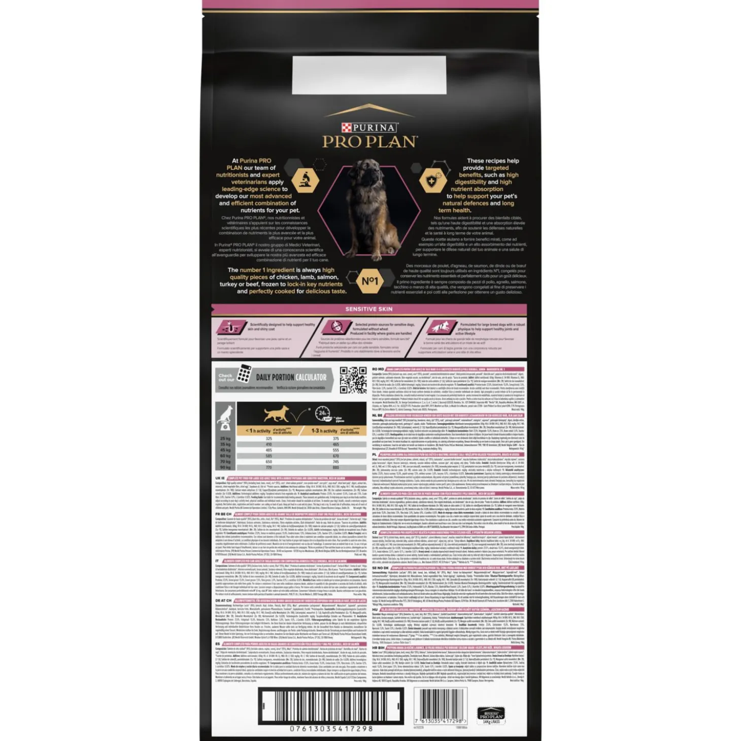 Purina Pro Plan Dog Adult Robust Sensitive Skin is verkrijgbaar in 14 kg.