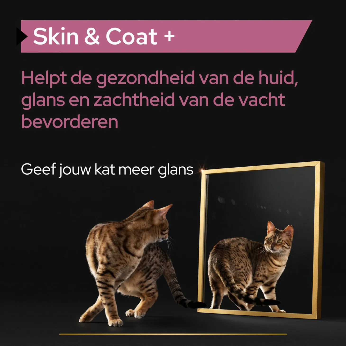 Is de vacht van jouw kat dof en haar huid niet zo soepel als je zou willen? Geef jouw geliefde huisdier de extra zorg en voeding die het verdient met Pro Plan Skin&Coat. Er is eenformule ontwikkeld dat een specifieke mix bevat van hoogwaardige ingrediënten, waaronder Noorse zalmolie en lijnzaadolie, die rijk zijn aan Omega-3 en -6 vetzuren, en vitamine E.