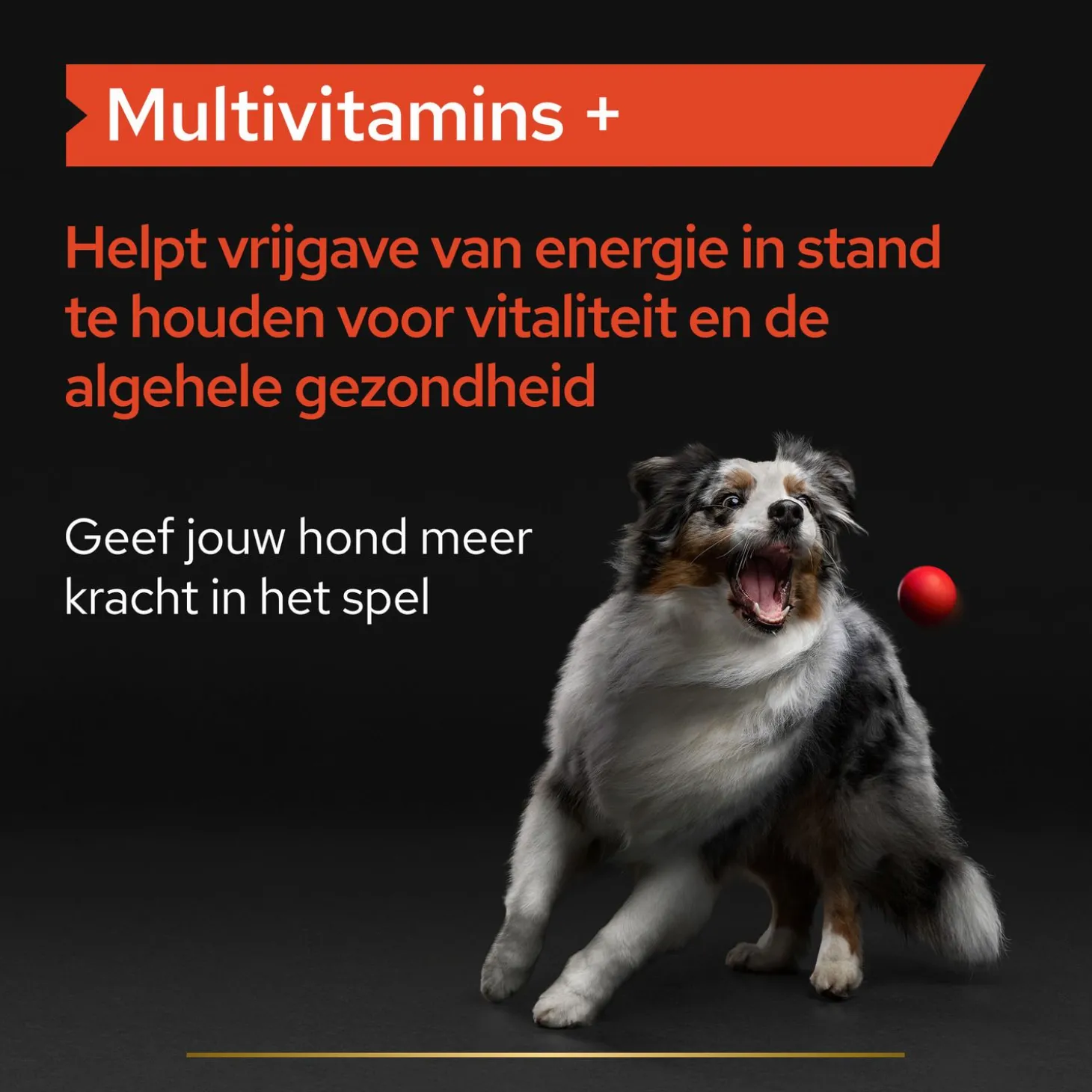 Geef jouw hond meer kracht in het spel met Pro Plan Multivitamins+ Tabletten en zorg voor zijn vitaliteit en welzijn.