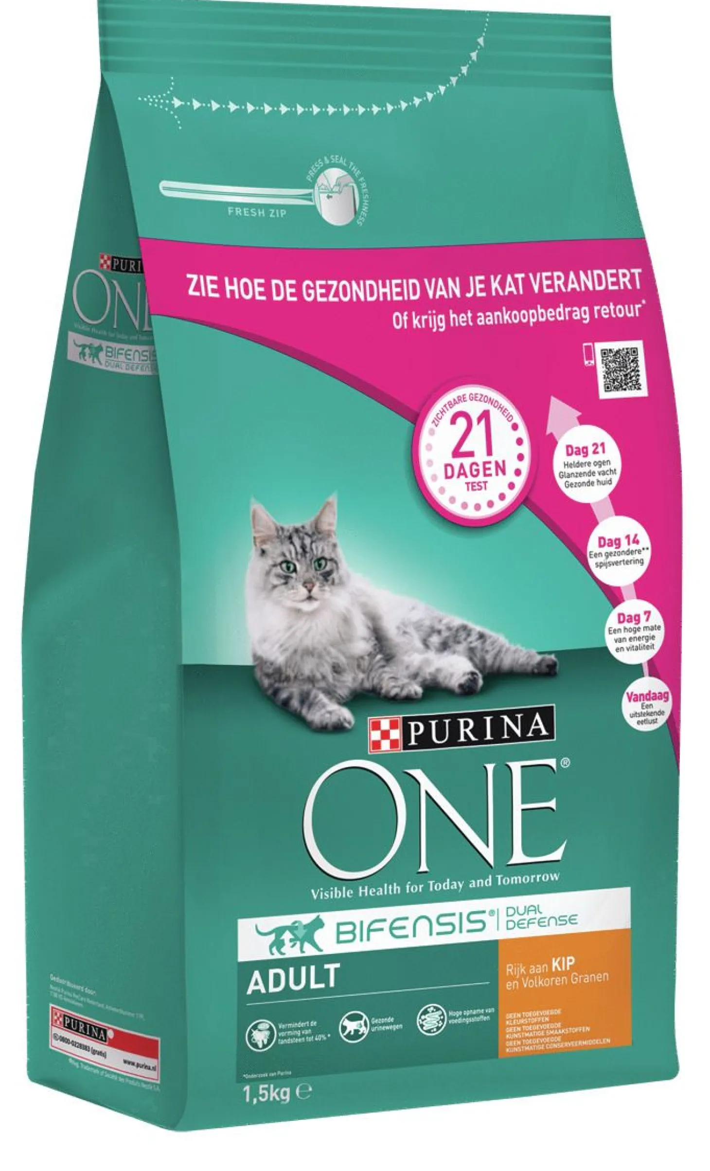 - Deze zak is recyclebaar; Purina ONE® Adult is qua voedingswaarde afgestemd op katten van 1 jaar en ouder