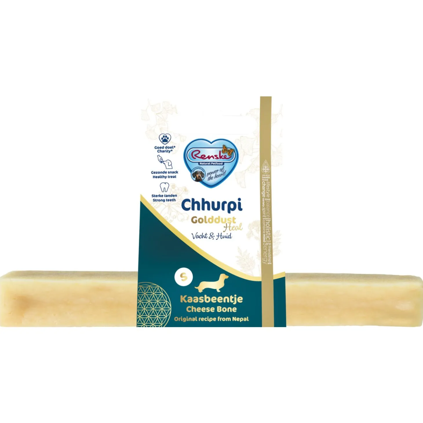 Ontdek de Renske Chhurpi Golddust Heal: een eeuwenoud recept uit de Himalaya, nu in een gezonde en heerlijke hondensnack! Deze natuurlijke traktatie is gebaseerd op traditionele methoden en wordt met de hand gemaakt, waardoor het een ware verwennerij is voor je trouwe viervoeter.