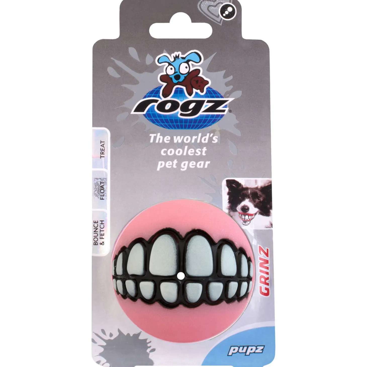 De Rogz Grinz Pupz werkt simpel, maar functioneel. In deze bal zit een opening waar je snoepjes in kunt verstoppen. Het is vervolgens aan de hond om deze snoepjes eruit te krijgen. Hij moet rollen, likken, krabben en snuffelen om de snoepjes eruit te krijgen. De bal heeft een grappige tandenopdruk, als je hond de bal in de bek heeft, lijkt het net alsof hij lacht!