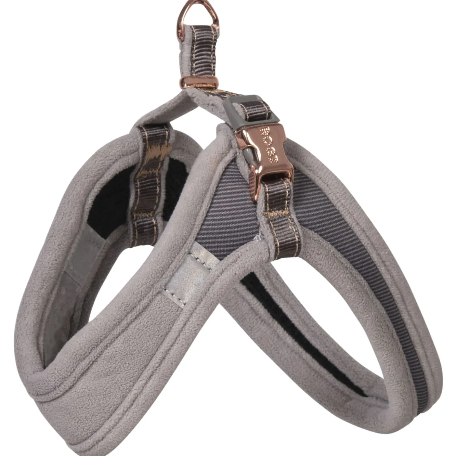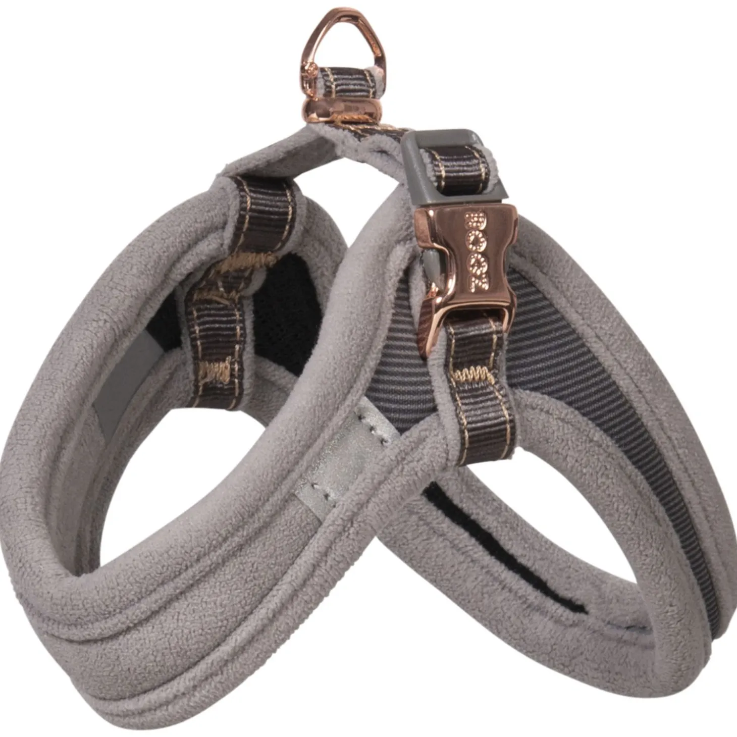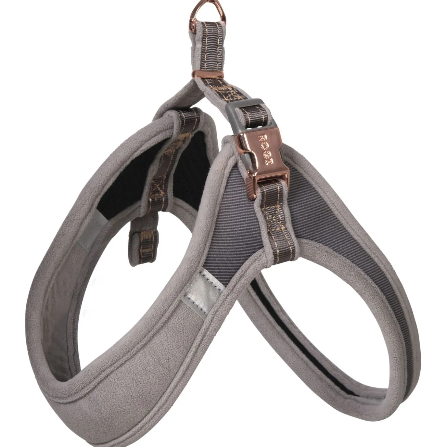 Het tuig heeft een zeer goede pasvorm dankzij onder andere de zachte padded-cushion voering die zorgt voor extra comfort en ondersteuning, zo zijn de gewrichten van je hond volledig vrij om te bewegen. De harde onderdelen hebben een ronde vorm, zo vormen ze mee met het lichaam en heeft het tuig een optimale pasvorm. Het tuig heeft zachte pasteltinten met rosé gouden details, die nooit uit de mode raken.