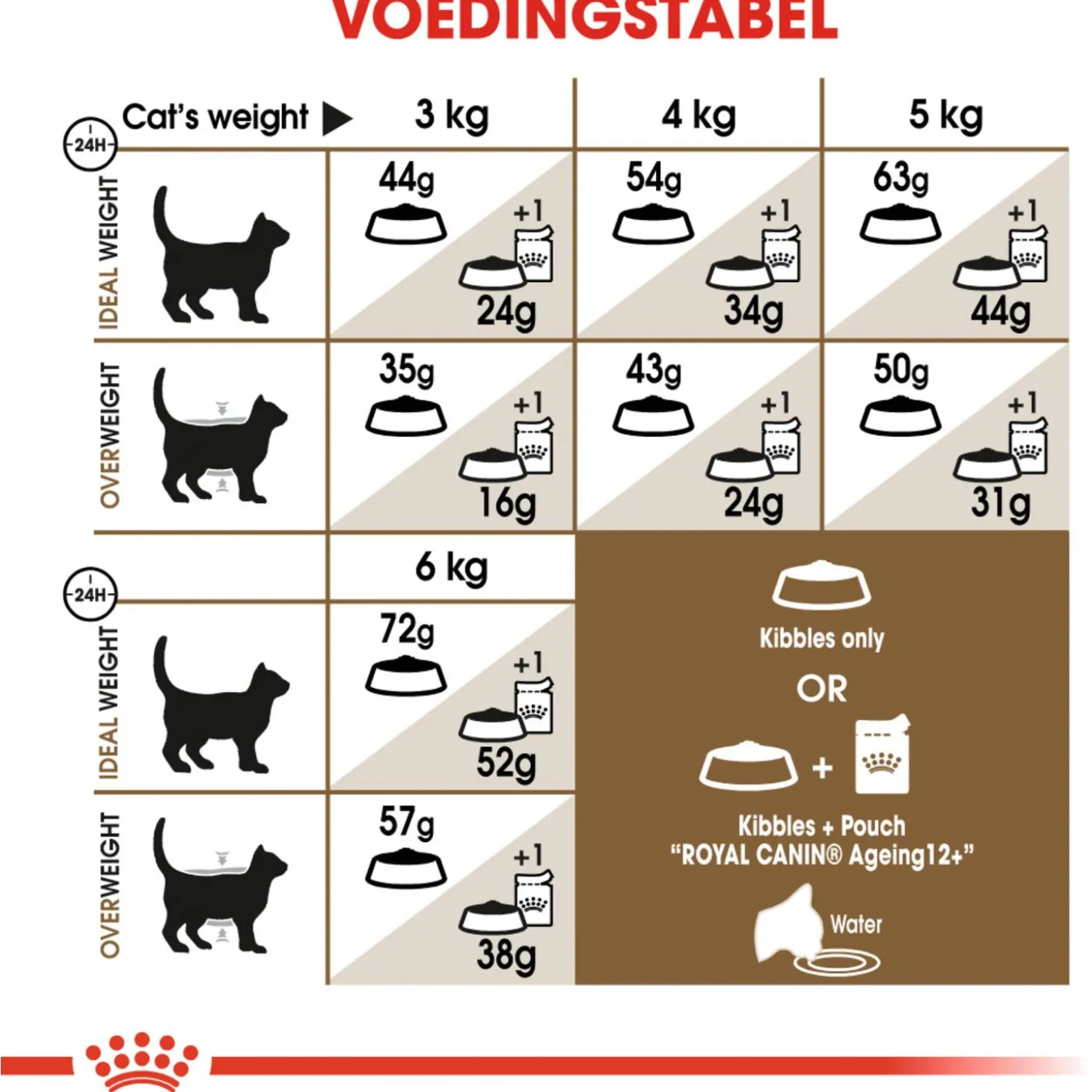 Royal Canin Ageing Sterilised 12+ is verkrijgbaar in 400 gr, 2 kg en 4 kg.