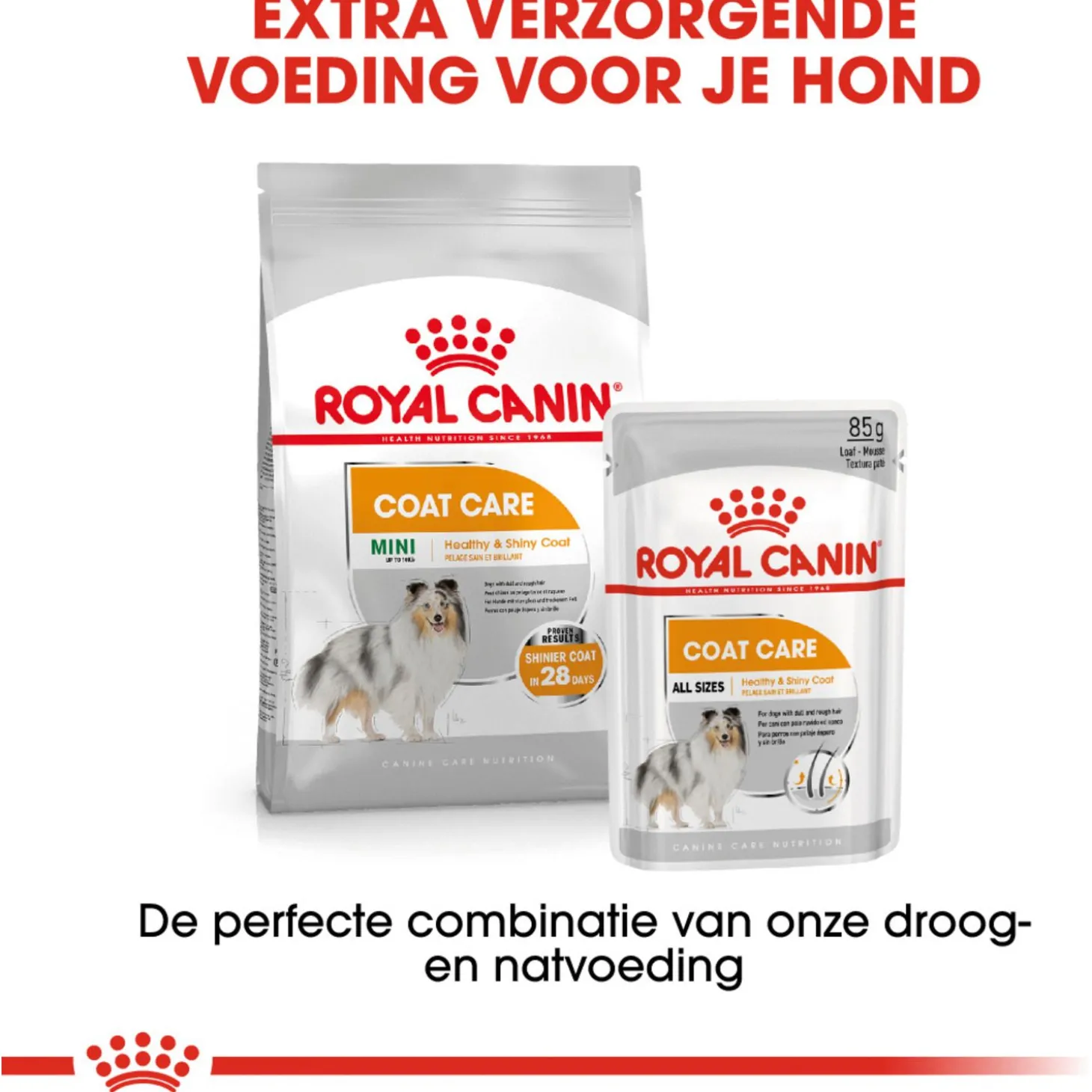 Royal Canin is toegewijd aan het leveren van voedingsoplossingen voor de behoeften van je huisdier. Alle producten ondergaan een uitgebreid kwaliteitscontroleproces om de optimale kwaliteit van de voeding te garanderen en om te voldoen aan de specifieke voedingsbehoeften en levensstijl van je hond. Als je hond Royal Canin Coat Care Loaf eet, krijgt hij een complete en uitgebalanceerde voeding voorgeschoteld.