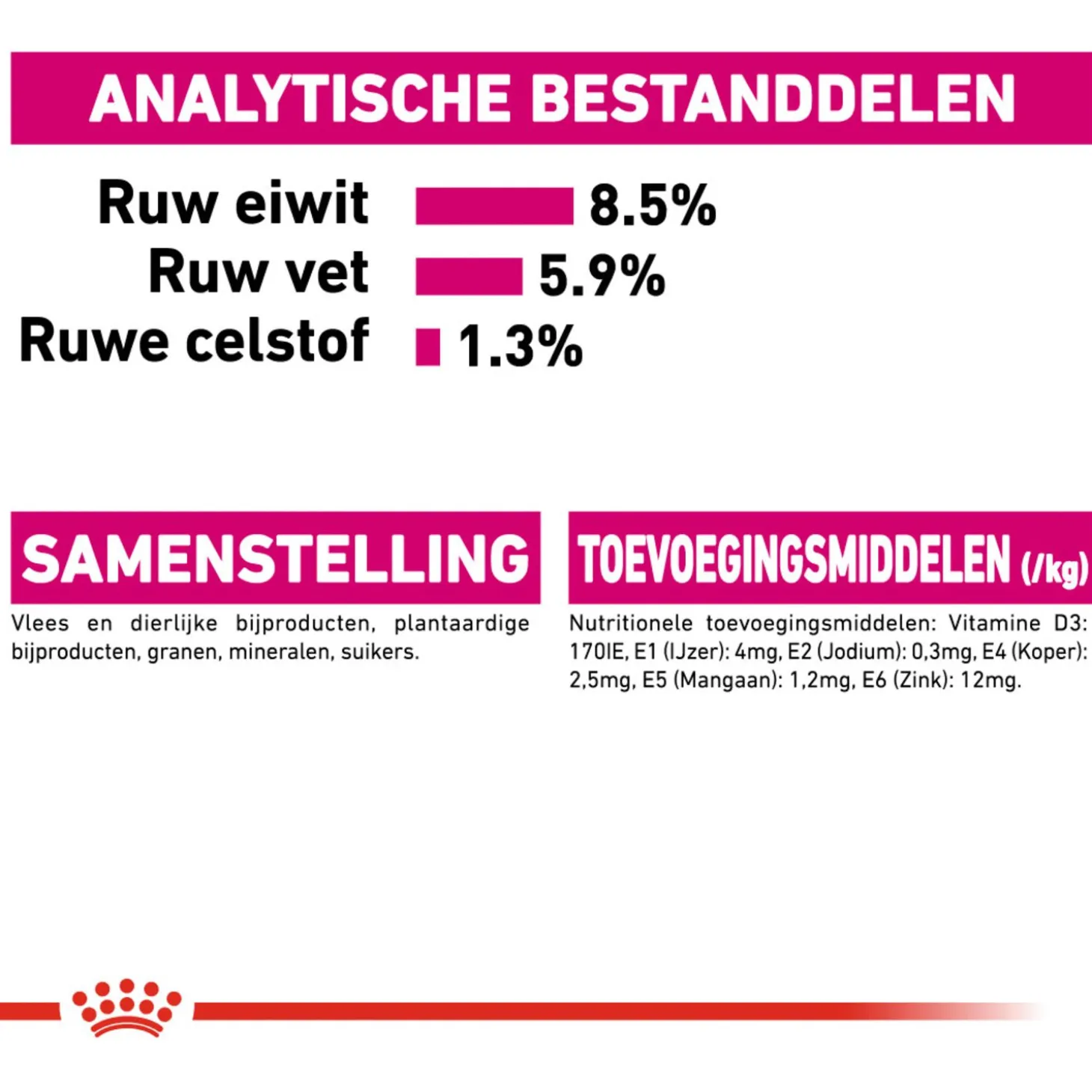 Alle Royal Canin voedingen zijn geheel compleet en bevatten hoogkwalitatieve eiwitten, vetten, vezels, vitamines en mineralen die jouw hond nodig heeft om zijn gezondheid te ondersteunen.