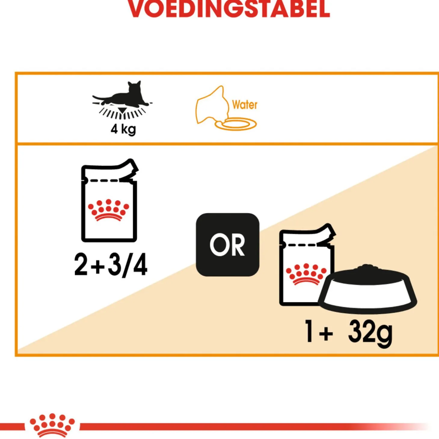 Royal Canin Hair & Skin is ook beschikbaar als overheerlijke krokante brok. Volg de voedingsrichtlijnen van Royal Canin als je van plan bent om je kat gemengd te voeren, zodat zij de optimale hoeveelheden droog- en natvoeding voorgeschoteld krijgt.