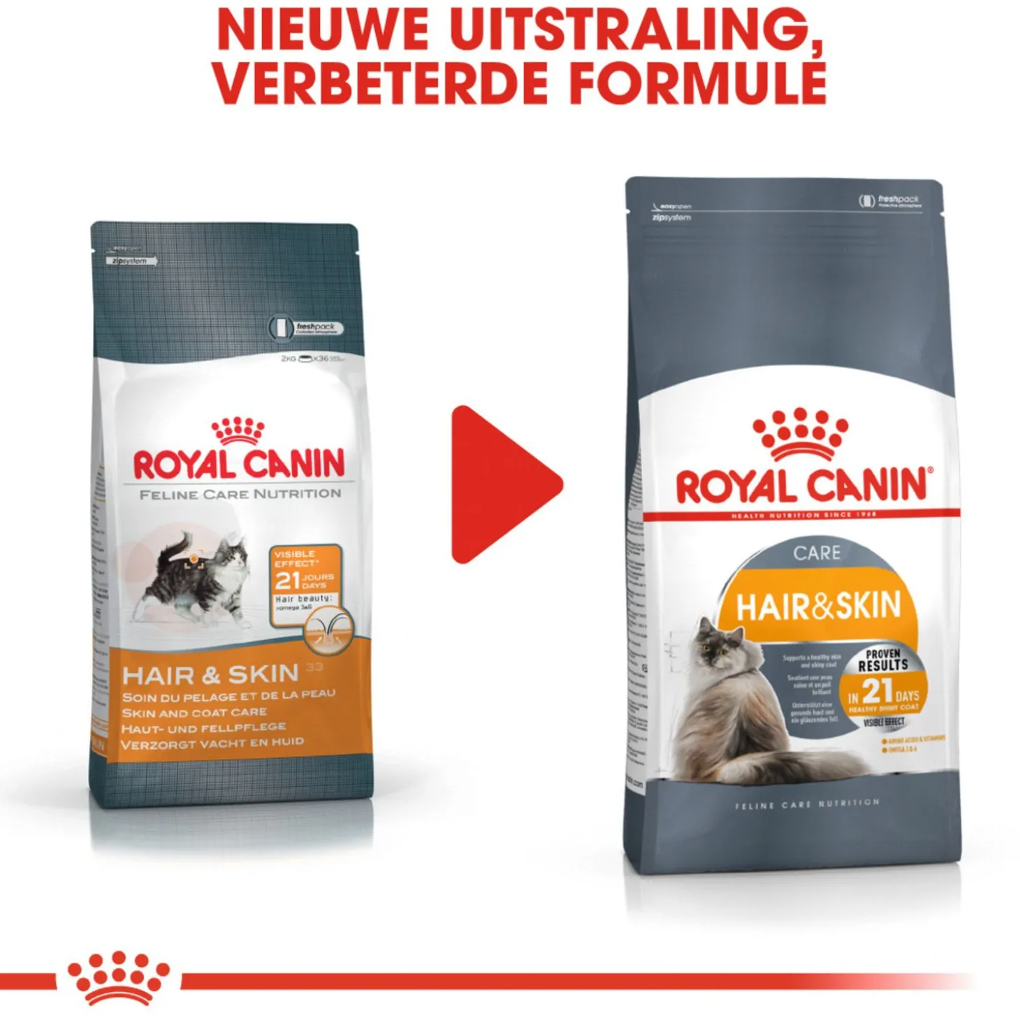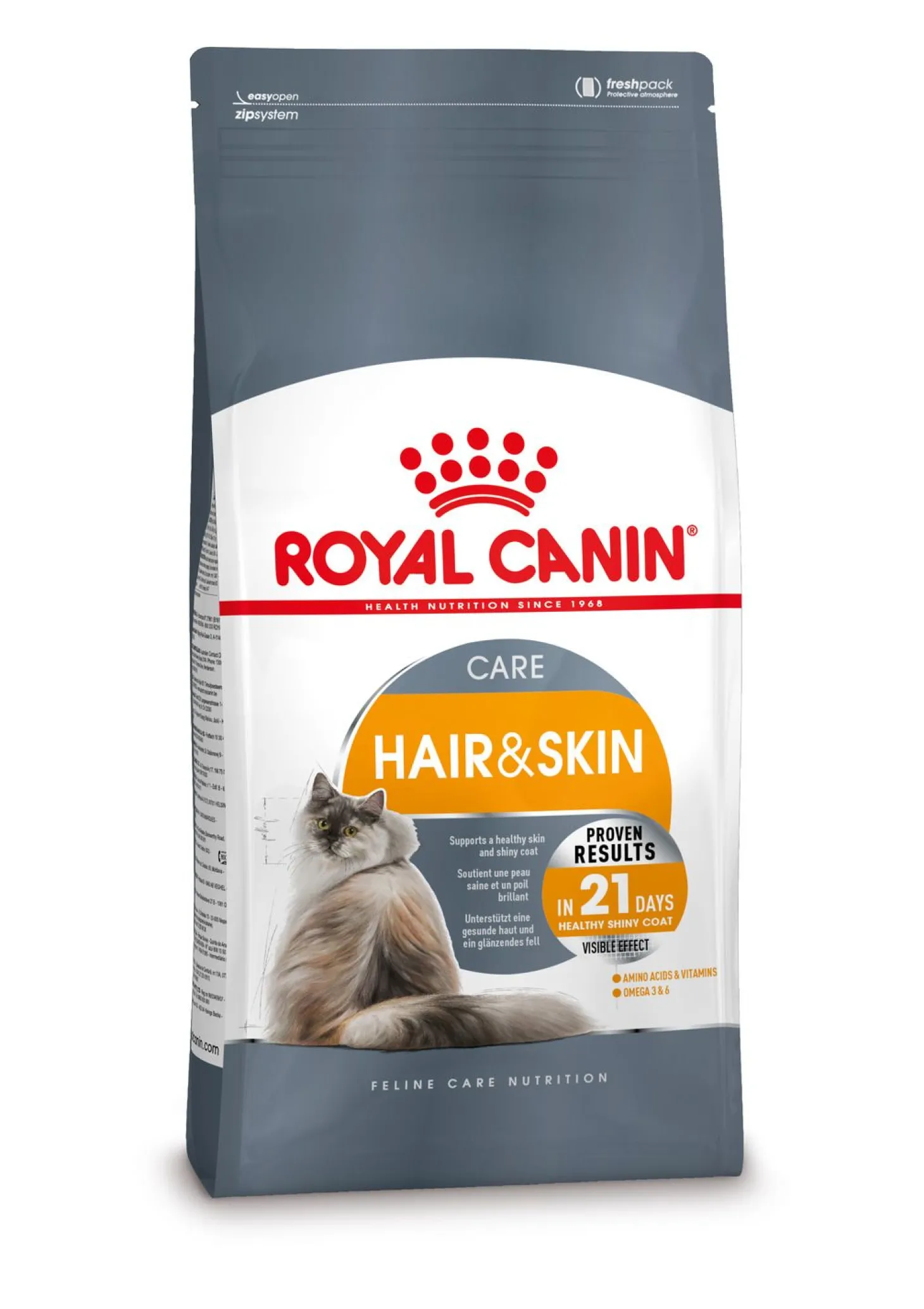 Royal Canin Hair & Skin Care is verkrijgbaar in 400 gram, 2 kg, 4 kg en 10 kg.