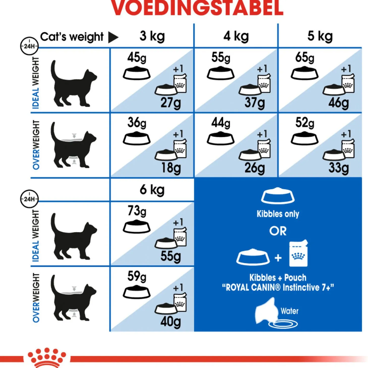 | Aanbeveling | Geef de voeding droog en zorg dat er altijd vers drinkwater beschikbaar is. Productiecode, registratienummer en datum van minimum houdbaarheid: zie verpakking. Bewaren in een droge en koele omgeving. |