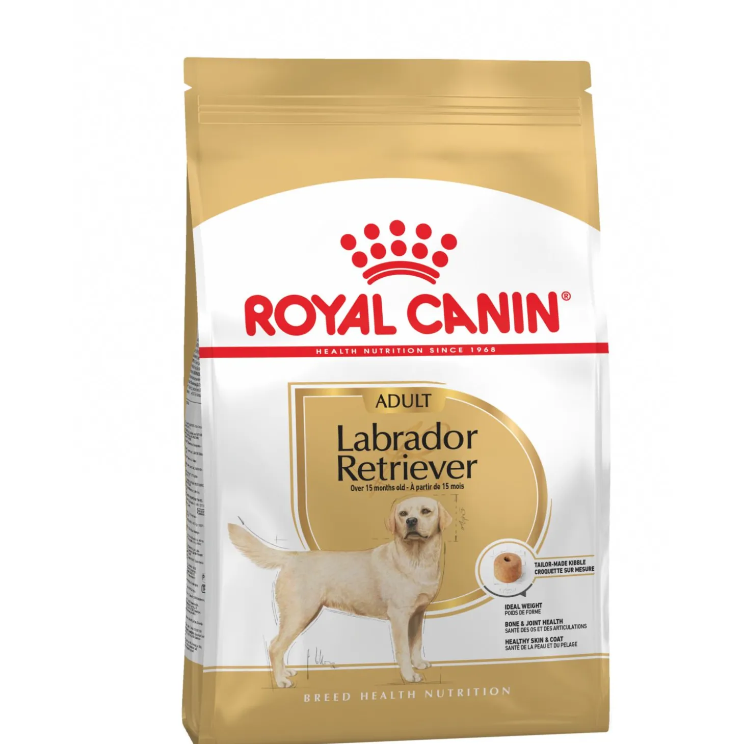 Royal Canin Labrador Retriever Adult is verkrijgbaar in 3 kg en 12 kg.