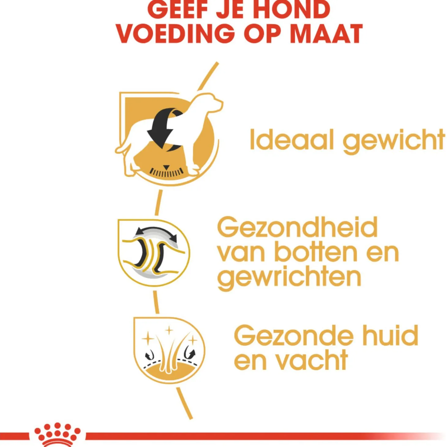 Daarom bevat Royal Canin Labrador Retriever Adult een aangepast caloriegehalte wat helpt het ideale gewicht van de Labrador te behouden. De vacht van de Labrador bestaat uit dicht op elkaar geplaatste korte haren en een dikke ondervacht. De structuur van deze waterafstotende vacht beschermt hem tegen de kou. Een goede conditie van de vacht van de Labrador Retriever is dus van groot belang.