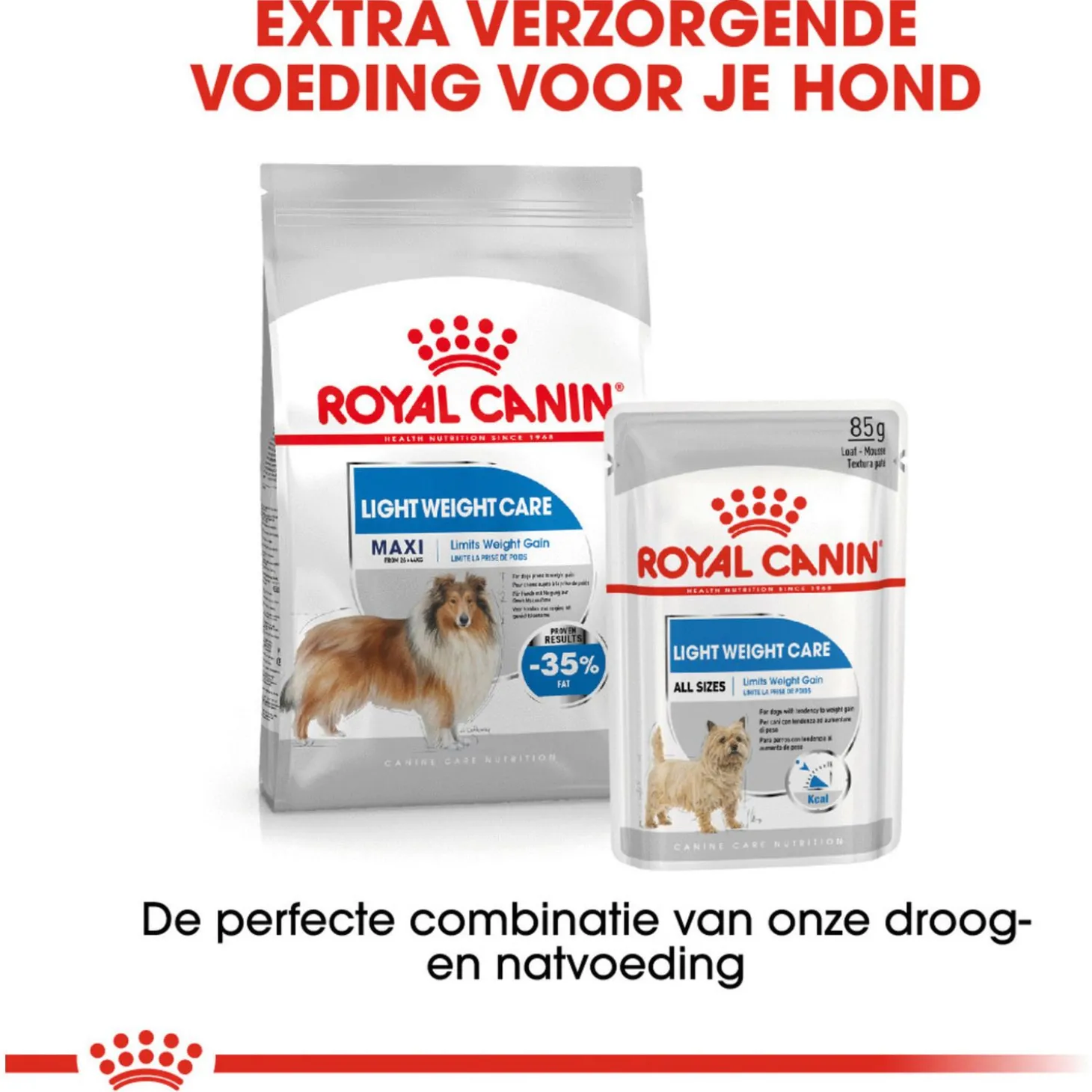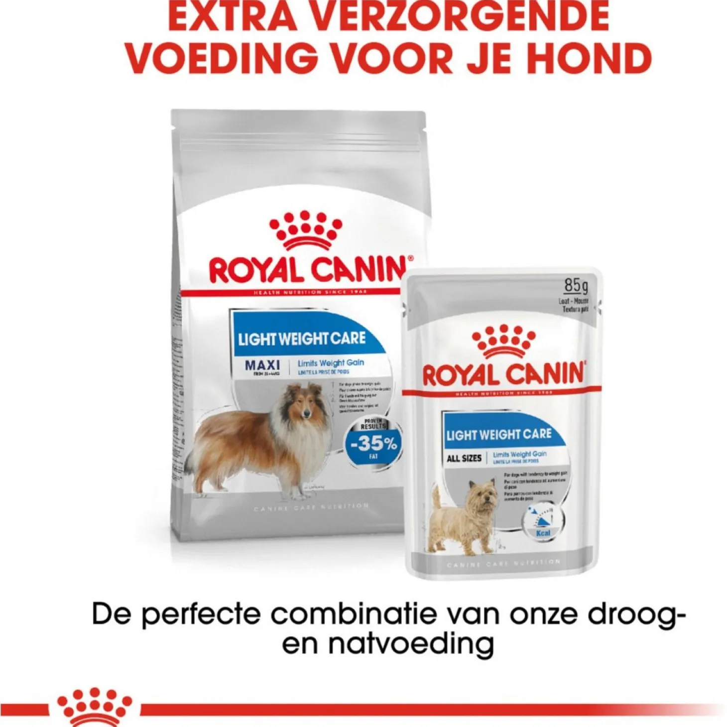 Royal Canin Light Weight Care Maxi is verkrijgbaar in 3 kg en 10 kg.