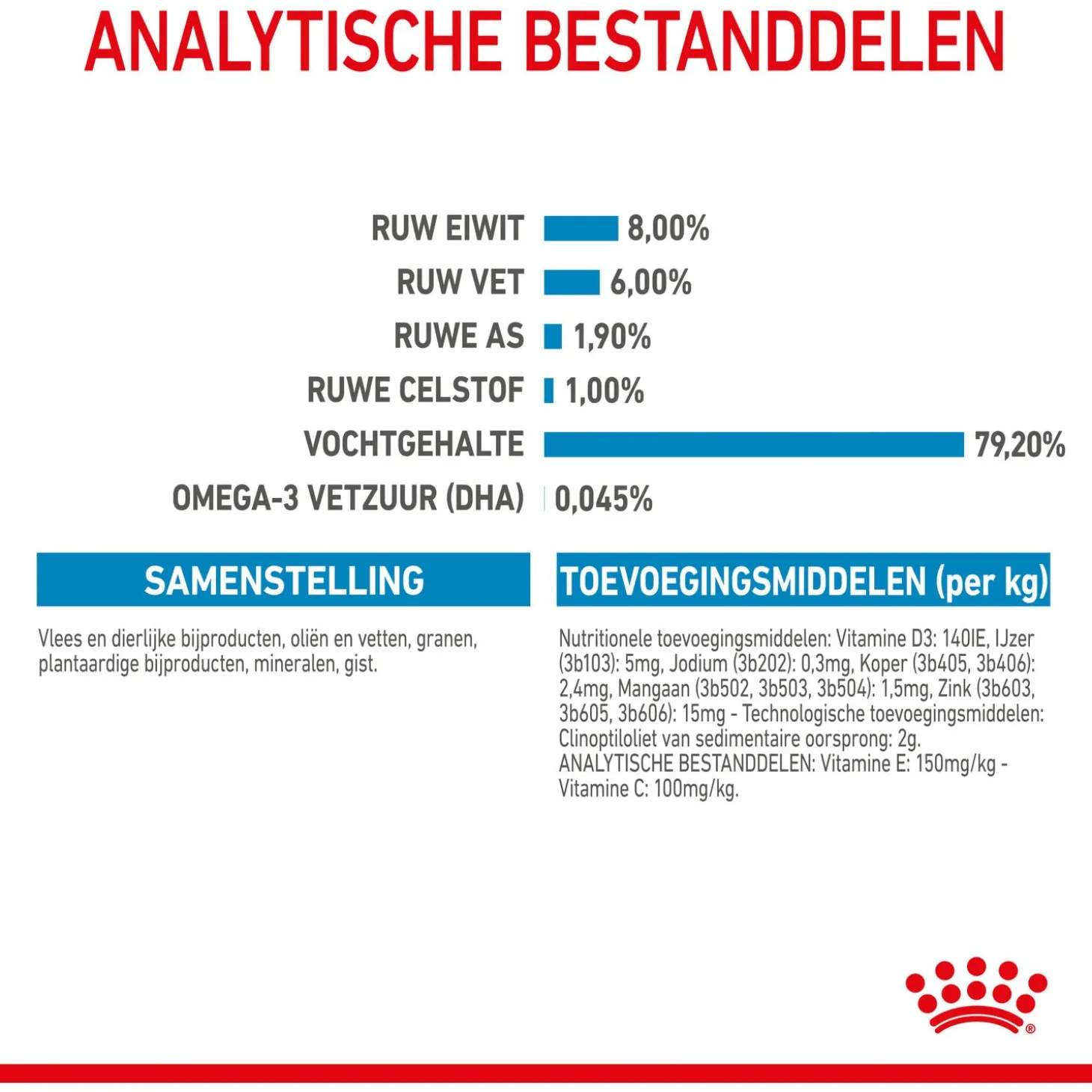 Royal Canin Mini Puppy Wet is speciaal ontwikkeld met de voedingsbehoeften van een pup van een klein ras (tot 10 kg wanneer volwassen) in het achterhoofd. De voeding is geschikt voor puppy’s van 2 tot 10 maanden oud. De natvoeding bevat heerlijke stukjes vlees verwerkt in een smakelijke saus.