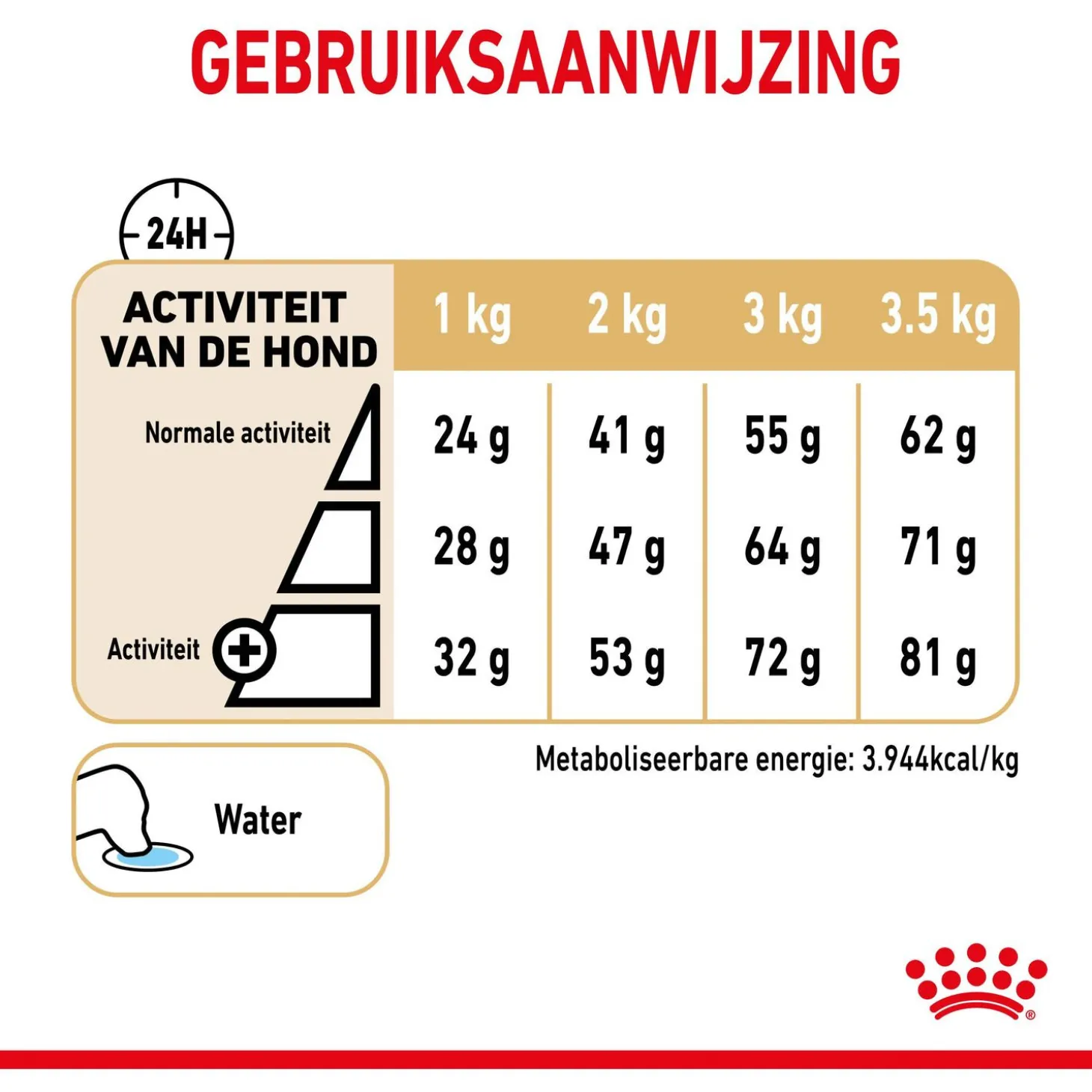 | Aanbeveling | Geef de voeding droog en zorg dat er altijd vers drinkwater beschikbaar is. Productiecode, registratienummer en datum van minimum houdbaarheid: zie verpakking. Bewaren in een droge en koele omgeving. |