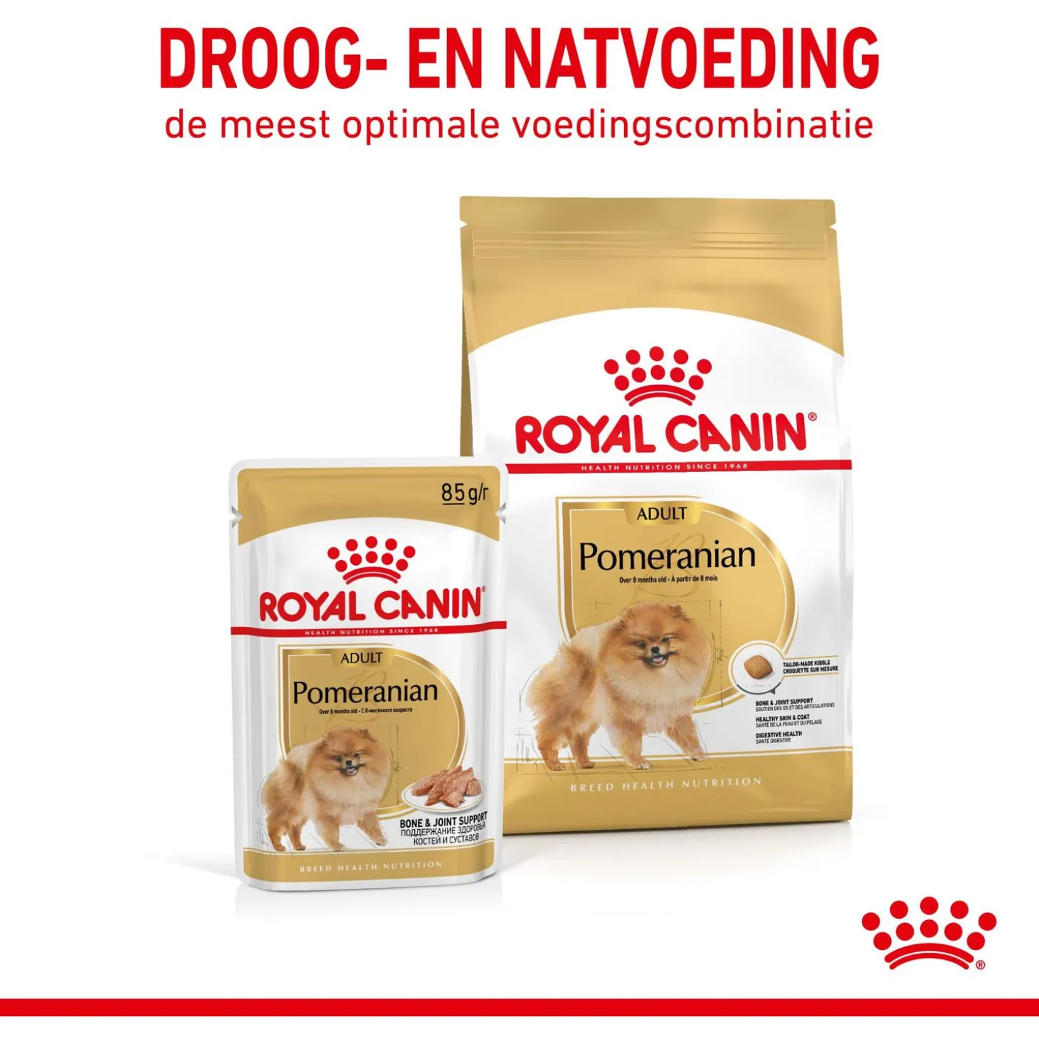 Royal Canin is toegewijd aan het leveren van voedingsoplossingen voor de behoeften van je huisdier. Alle producten ondergaan een uitgebreid kwaliteitscontroleproces om de optimale kwaliteit van de voeding te garanderen en om te voldoen aan de specifieke voedingsbehoeften en levensstijl van je hond. Als je hond Royal Canin Pomeranian Adult eet, krijgt hij een complete en uitgebalanceerde voeding voorgeschoteld.