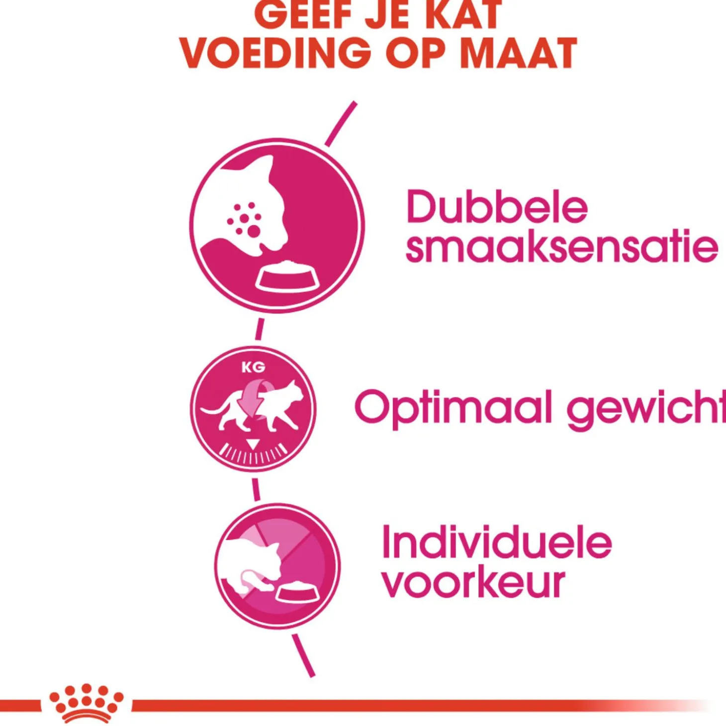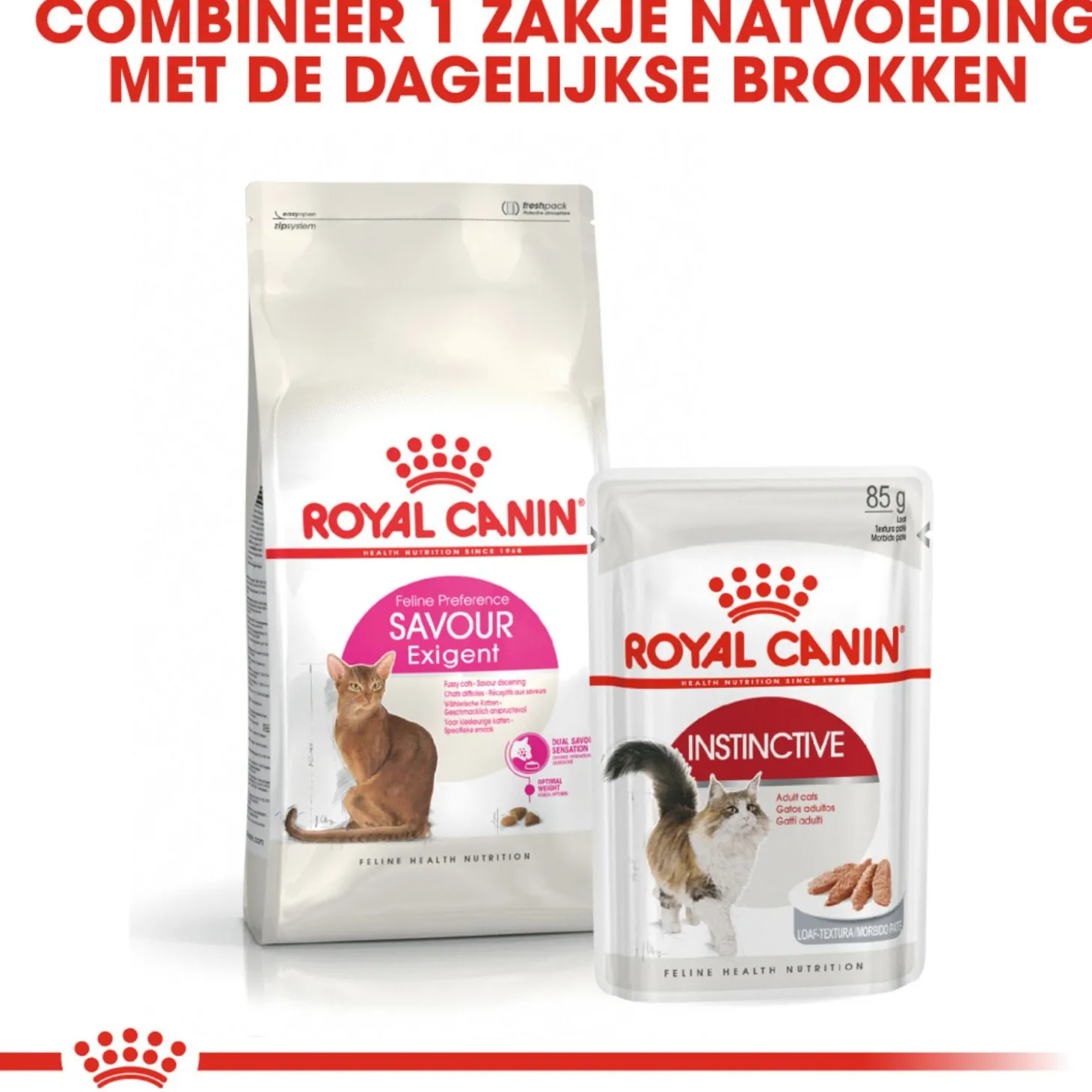 Royal Canin is toegewijd aan het leveren van voedingsoplossingen voor de behoeften van je huisdier. Alle producten ondergaan een uitgebreid kwaliteitscontroleproces om de optimale kwaliteit van de voeding te garanderen en om te voldoen aan de specifieke voedingsbehoeften en levensstijl van je kat. Als je kat Royal Canin Savour Exigent eet, krijgt ze een complete en uitgebalanceerde voeding voorgeschoteld.