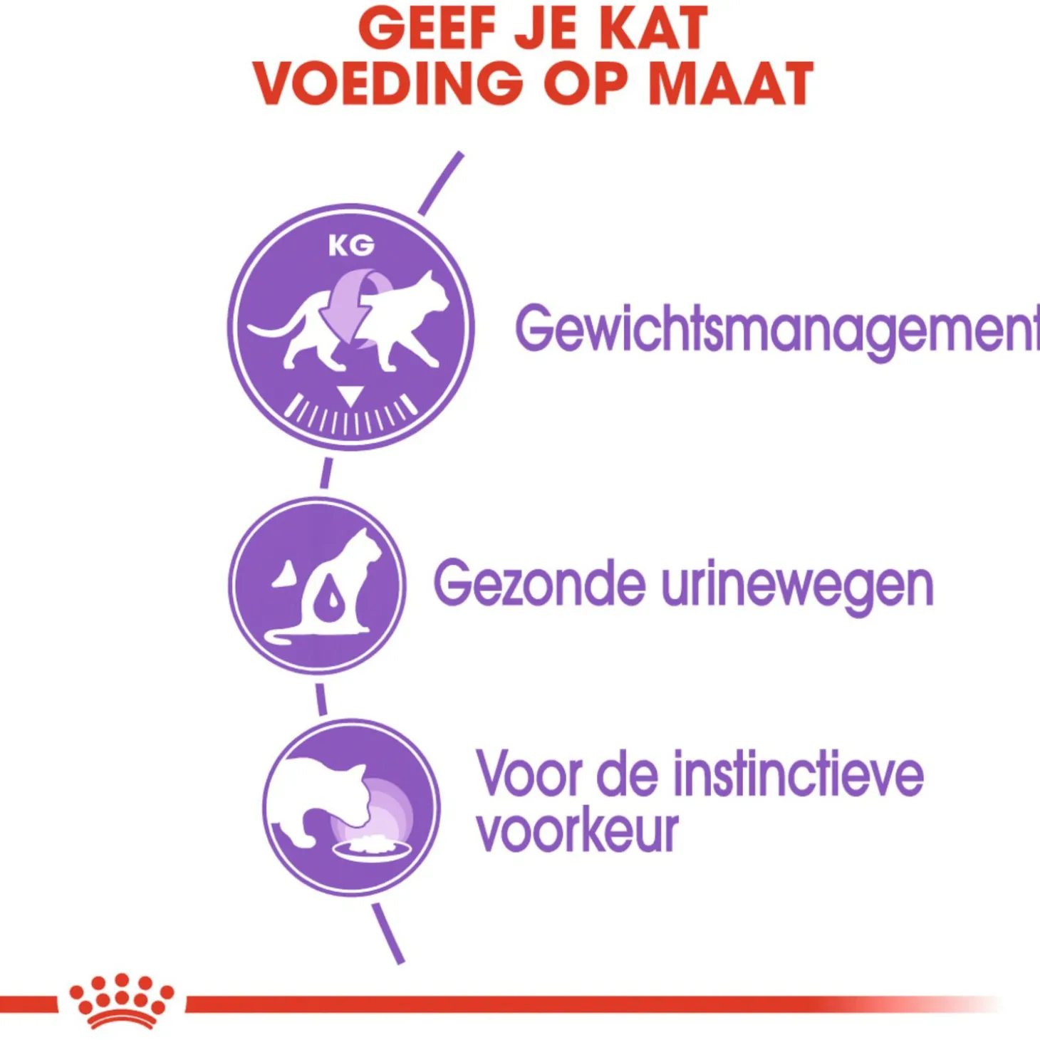 Omdat ook bij katten smaken verschillen, is Royal Canin Sterilised beschikbaar als zowel natvoer in een overheerlijke saus en als krokante brok. Volg de voedingsrichtlijnen van Royal Canin als je van plan bent om je kat gemengd te voeren, zodat zij de optimale hoeveelheden droog- en natvoeding voorgeschoteld krijgt.
