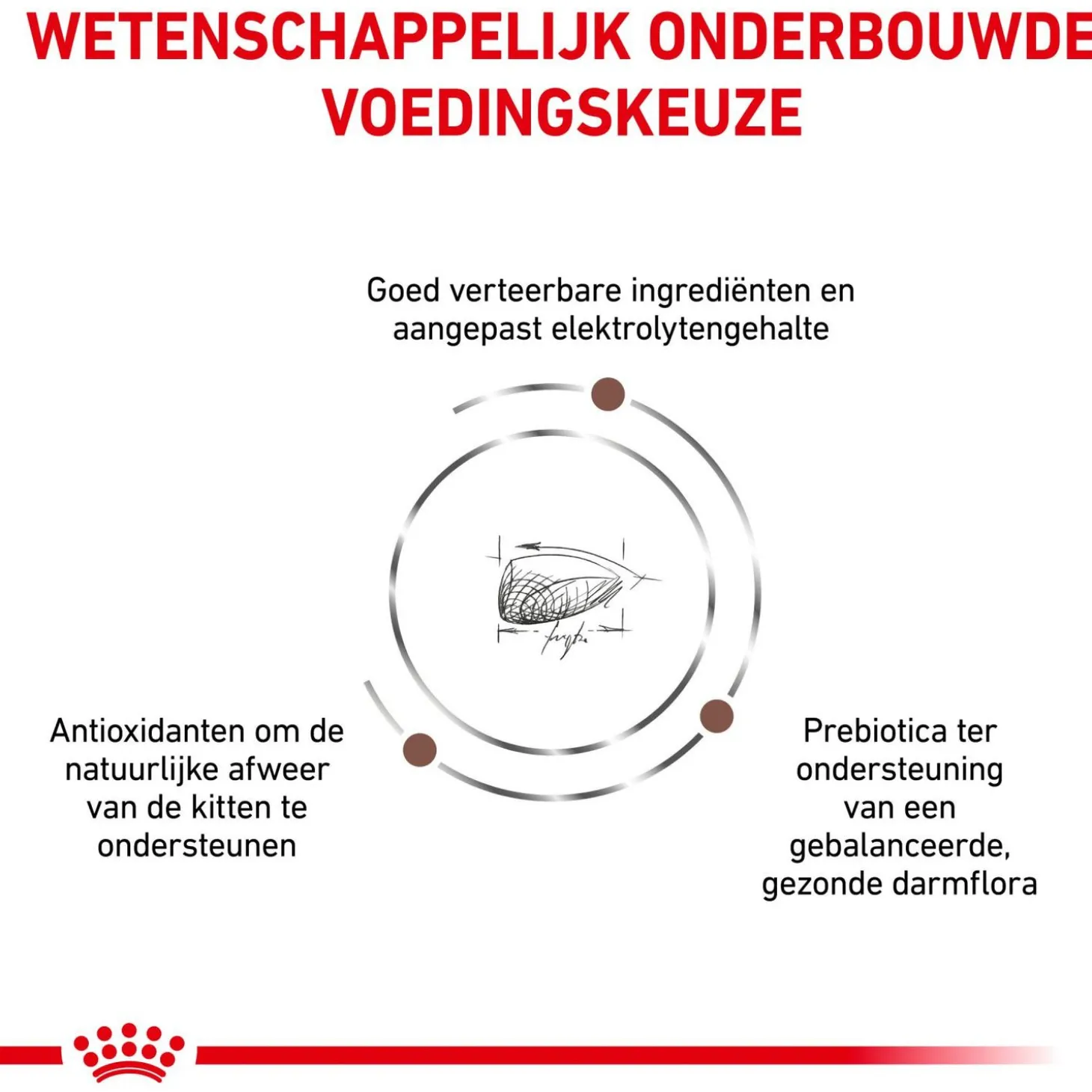 Uiteraard past de voeding ook bij de behoeftes van een snelgroeiende kitten. De formule bevat een hoog energiegehalte met aangepaste eiwitten- en calciumniveaus om aan alle behoeften van het lichaam te voldoen.