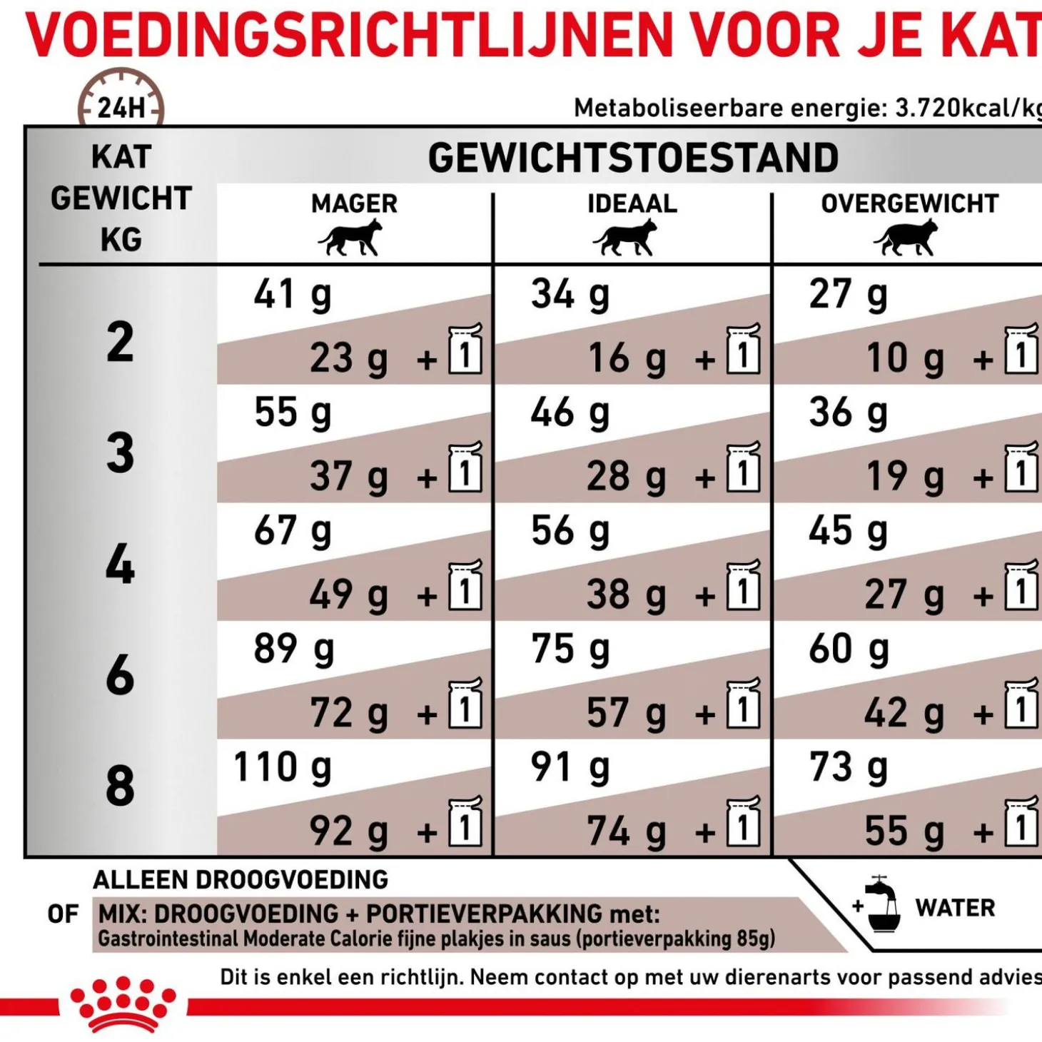 Let op: de Veterinary-lijn van Royal Canin is speciaal ontwikkeld voor de behandeling van gevoeligheid, aandoeningen, overgewicht en overige problemen. Geef dit voer alleen in overleg met je dierenarts.