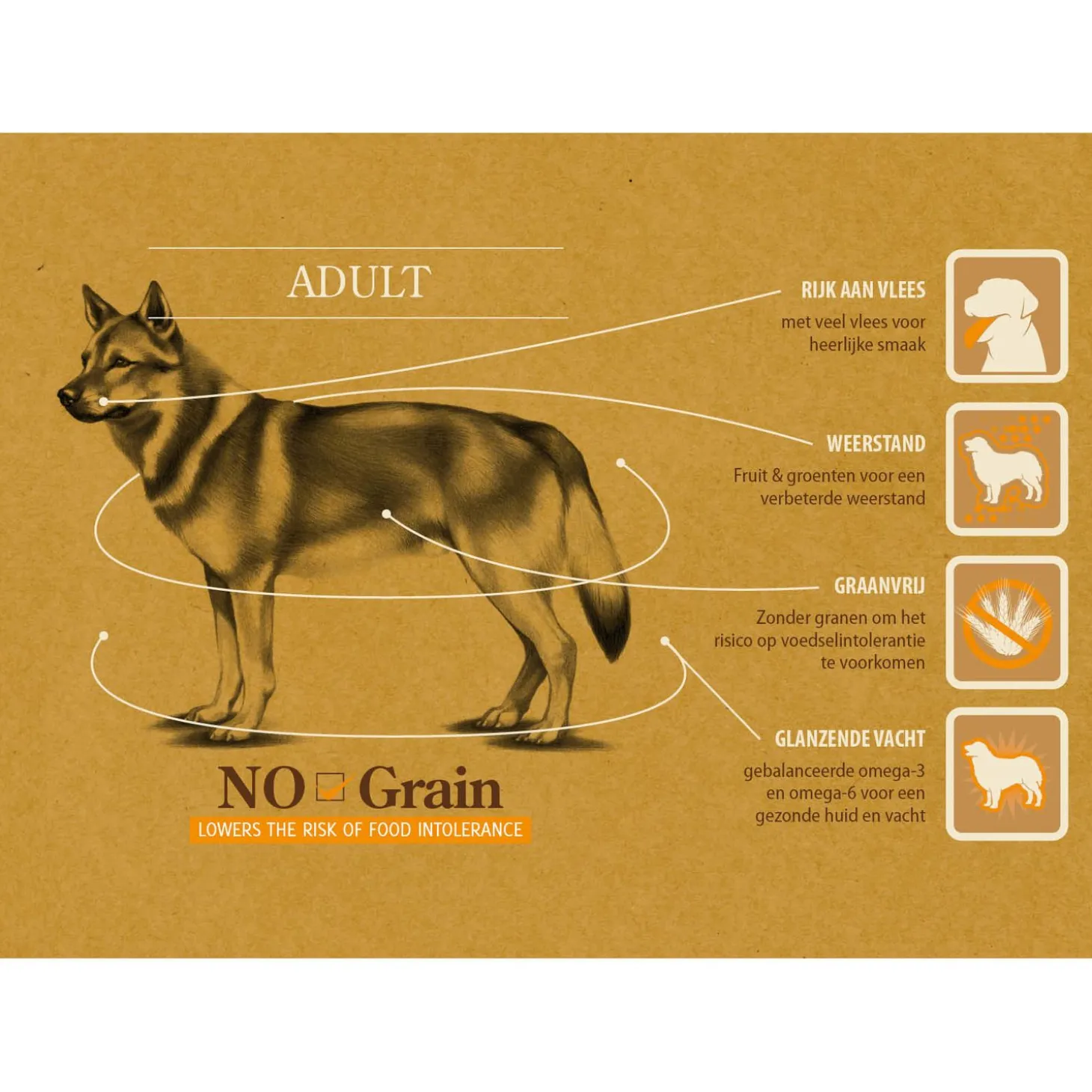 Ook aan de huid en vacht is gedacht, hiervoor is een uitgebalanceerde verhouding van omega 3- en 6-vetzuren toegepast.