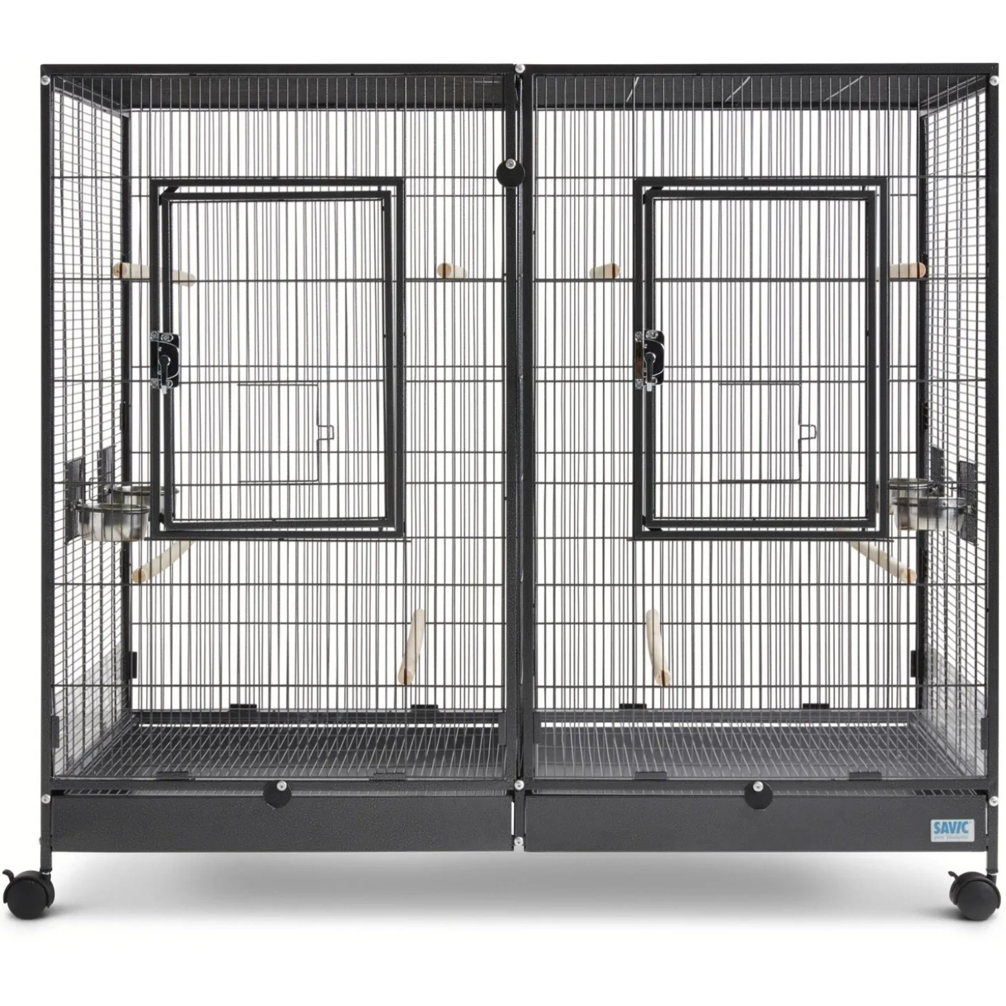 De Tasmania 120 van Savic is een royale volière voor jouw gevederde vogelvriend. Een comfortabel thuis voorzien van verschillende gemakken. De voorzijde van de volière beschikt over twee grote deuren. Door deze deuren kan jij gemakkelijk in de kooi en kan je gevederde vriend de kooi verlaten. De deuren zijn ook groot genoeg voor een mooie landing in de kooi. De kooi komt ook met een handige uitschuifbare lade zodat het verschonen van de kooi extra gemakkelijk is. Door het tralierooster voorkom je dat de vogel, tijdens het afwezig zijn van de lade, kan wegvliegen.