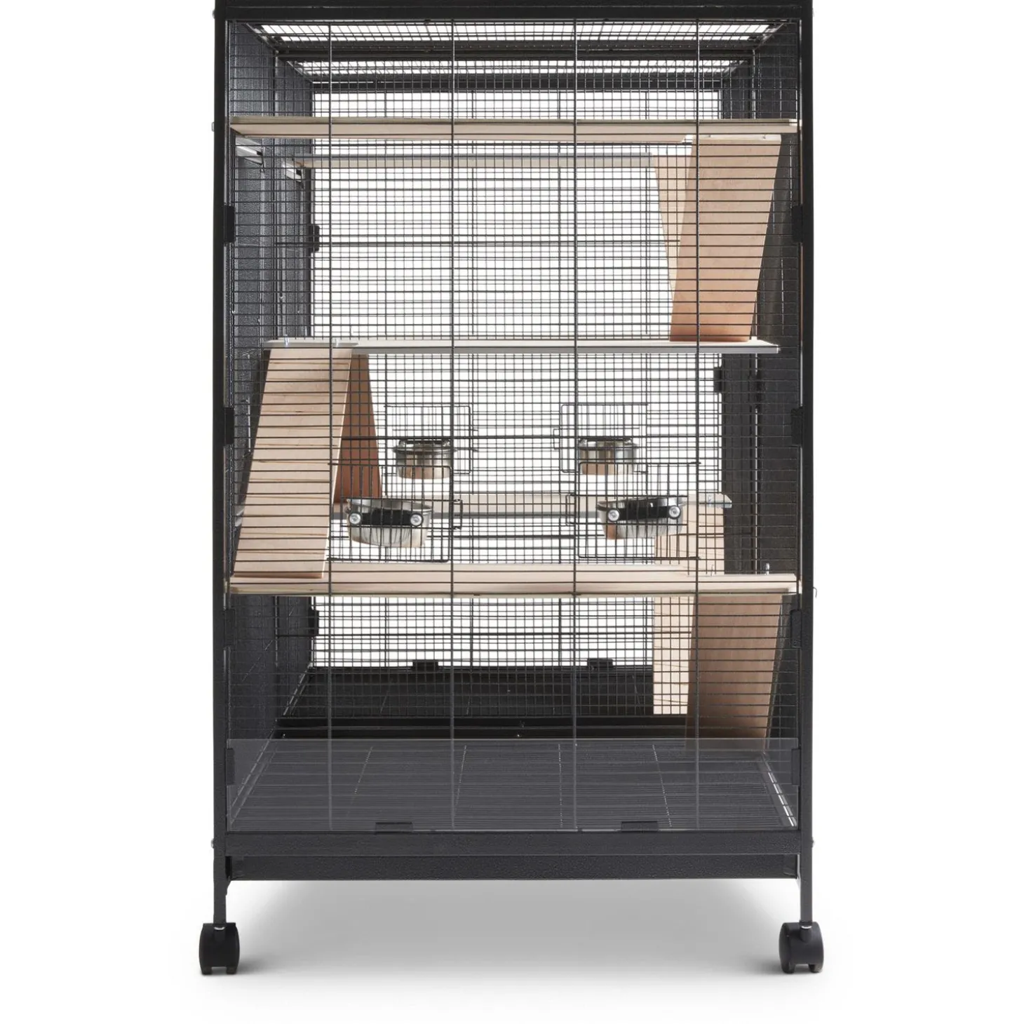Een groot voordeel aan de Tasmania 120 is dat deze komt met een scheidingstralies. Wanneer je nieuwe vogels hebt of twee vogels die op dit moment niet goed samen kunnen, is het mogelijk om ze beide een eigen plek te geven door de fijne scheiding. De kooi wordt geleverd met vier 360°-draaibare wielen waarvan twee met rem. Ook 8 zitstokken, 4 roestvrijstalen voerbakken met 6 hangers en 6 anti-vuilschermen worden meegeleverd. De kooi is uit te breiden met een los houten plankenset zodat hij geschikt wordt voor knaagdieren zoals ratten of chinchilla’s.