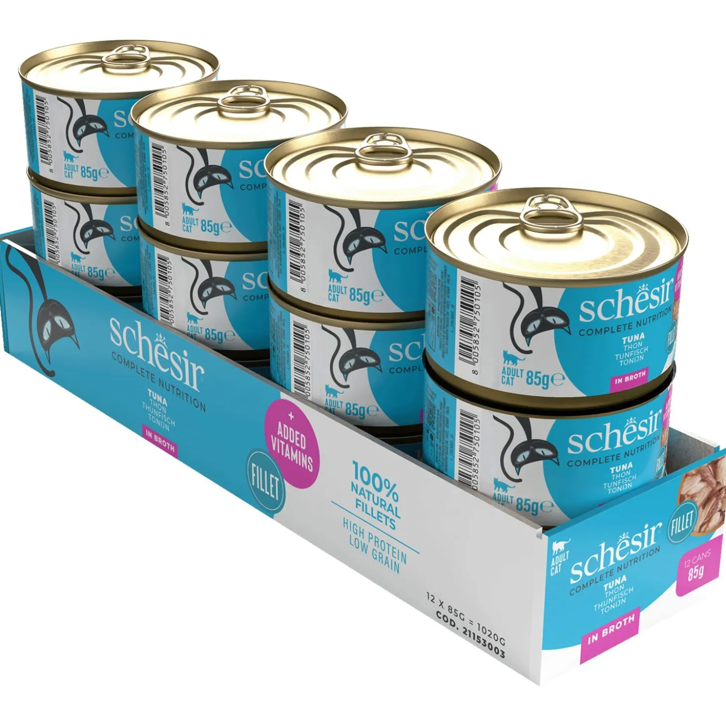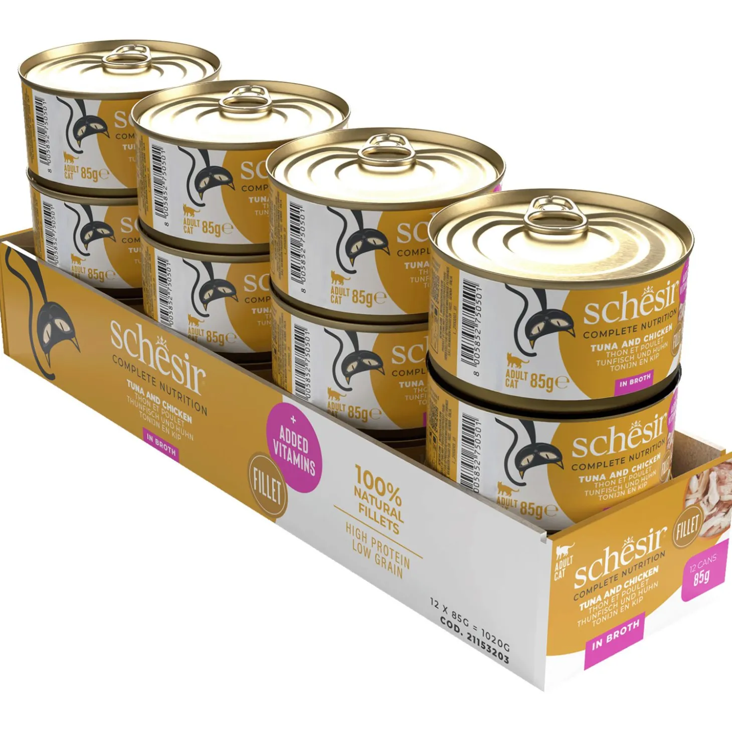 De Schesir natvoedingen zijn 100% natuurlijk en bevatten een hoog gehalte aan vis of vlees. Daarnaast zijn er enorm veel verschillende smaakvarianten beschikbaar. Zelfs de moeilijkst etende katten zullen een lekkere smaak vinden!