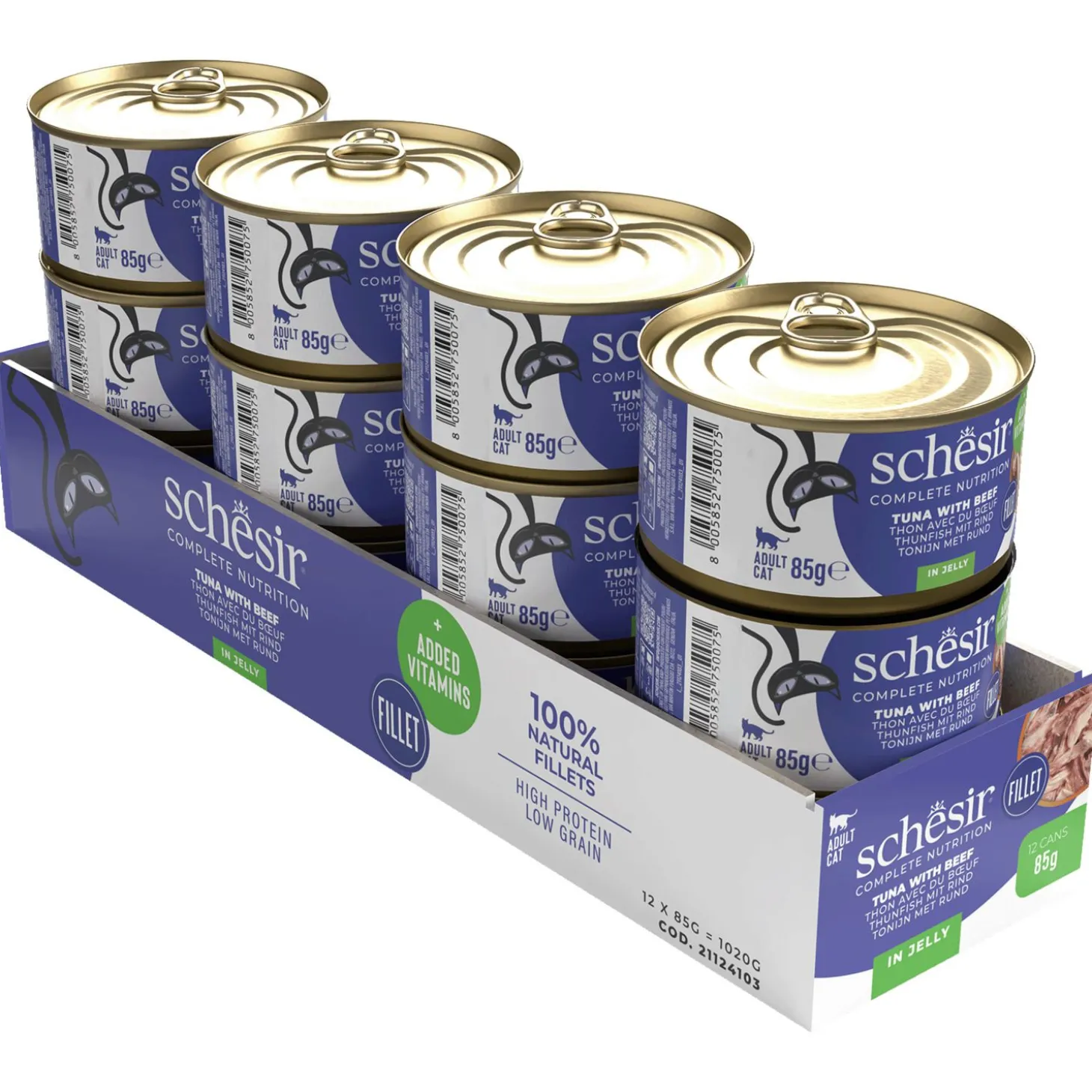 De Schesir natvoedingen zijn 100% natuurlijk en bevatten een hoog gehalte aan vis of vlees. Daarnaast zijn er enorm veel verschillende smaakvarianten beschikbaar. Zelfs de moeilijkst etende katten zullen een lekkere smaak vinden!