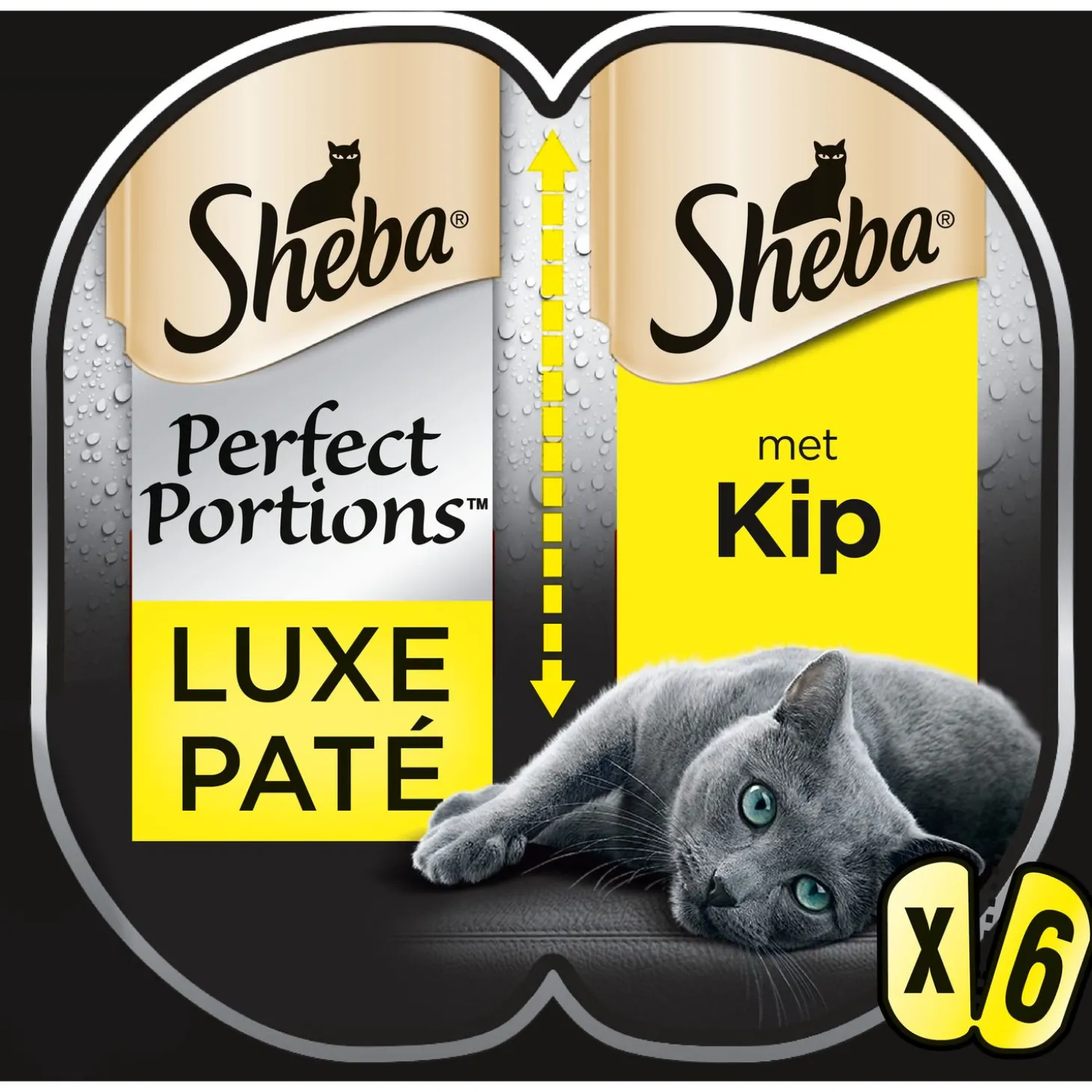 Sheba Perfect Portions bevat 6 kuipjes van 37,5 g verkrijgbaar in de smaken kip, rund of zalm.