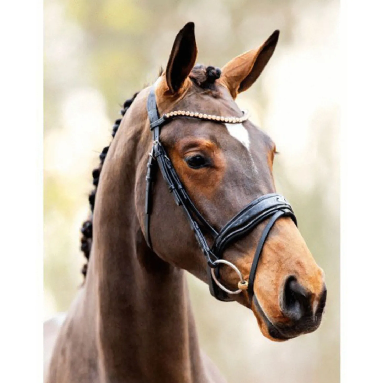 Luxe hoofdstel uit de Showtime collectie met Rosé gouden stenen in de frontriem. Met anatomisch kopstuk en anatomische neusriem.