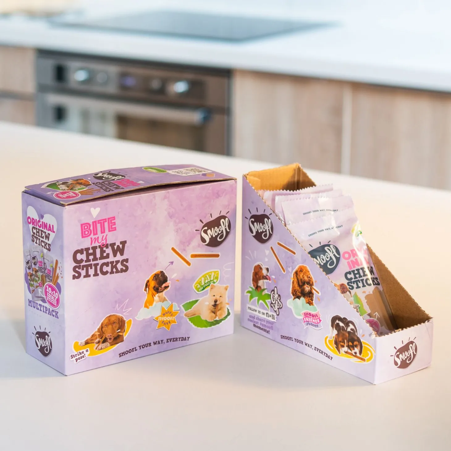 Kan je hond maar niet genoeg krijgen van zijn Smoofl ijsjes? Koop dan gauw een portie extra Chew Sticks zodat je nóg meer ijsjes kunt maken. De Chew Sticks zijn te gebruiken in combinatie met alle Smoofl ijsmixen en Ice Moulds. Of gebruik ze om je eigen ijscreatie mee te maken!