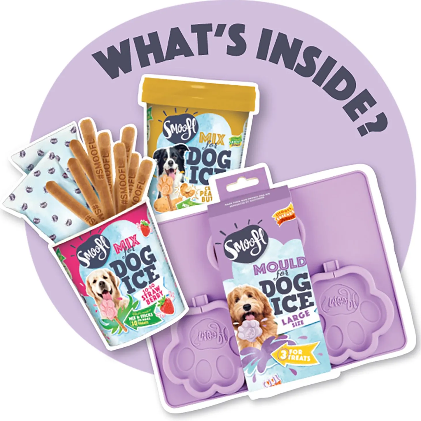 Verras je viervoeter tijdens de warme zomerdagen met de heerlijke Honden IJs Starter Kit van Smoofl! Ga je op vakantie of wil je genieten van een fijne staycation? Dan is deze startersset ideaal, inclusief een twee heerlijke smaken, eetbare stokjes en een handige ijsvorm. De set is verkrijgbaar voor kleine, middelgrote en grote honden.