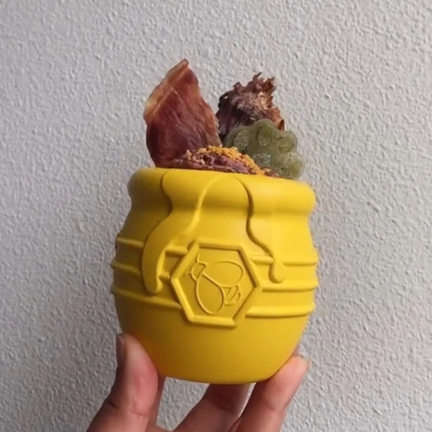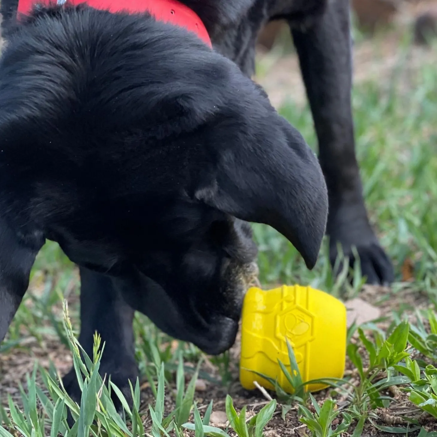 - Vul deze duurzame rubberen snoepdispenser met lekkernijen en ander voedsel om een verrijkende uitdaging voor het foerageren van uw honden te creëren.
