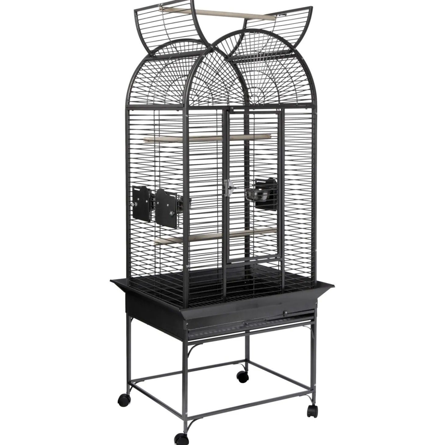 De Villa Anna is een mooie en klassieke papegaaienkooi met extra hoge leefruimte. Het dak van deze kooi gaat naar buiten open. Hier kan je een zitstokje tussen zetten, zodat jouw vogel een land- en zitplaats heeft bovenop de kooi. Verder beschikt het hok over drie RVS voederbakjes en twee stevige houten zitstokken voor in de kooi zelf. De kooi is gemakkelijk te verplaatsen door de kunststof rolwielen. De voerbakjes zijn van buitenaf bereikbaar door middel van de draaideurtjes en bevatten stevige sloten. Zo kan je het eten en drinken verversen zonder de kooi open te maken! Het halve maan slot aan de voorzijde van de kooi houdt de deur stevig op zijn plaats en is niet gemakkelijk open te maken door jouw vogel.