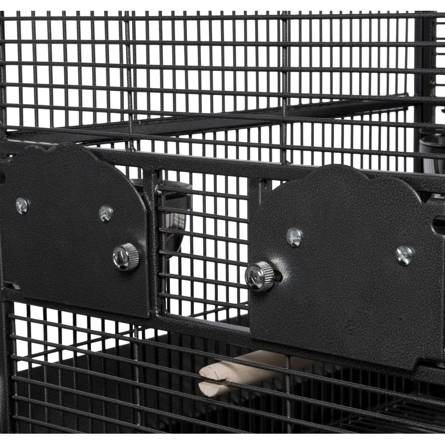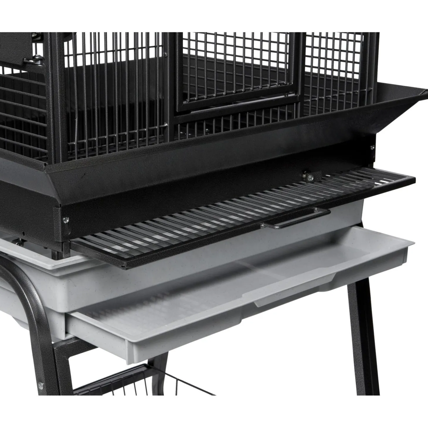 Om het schoonmaken makkelijker te maken heeft de kooi een schuiflade en een uitneembaar looprooster. Het looprooster kan je in de kooi laten zitten tijdens het schoonmaken van de schuiflade, zo kan jouw vogel niet ontsnappen. Ook is het rooster geschikt om contact met de ontlasting en voedingsresten (die kunnen gaan schimmelen) te voorkomen. Zorg er wel voordat jouw vogel dan de gelegenheid heeft om te scharrelen in bijvoorbeeld een plastic bak met houtsnippers! Daarnaast bevat de kooi ook opvangranden, wat ervoor zorgt dat er minder troep en ontlasting op de grond zal vallen.