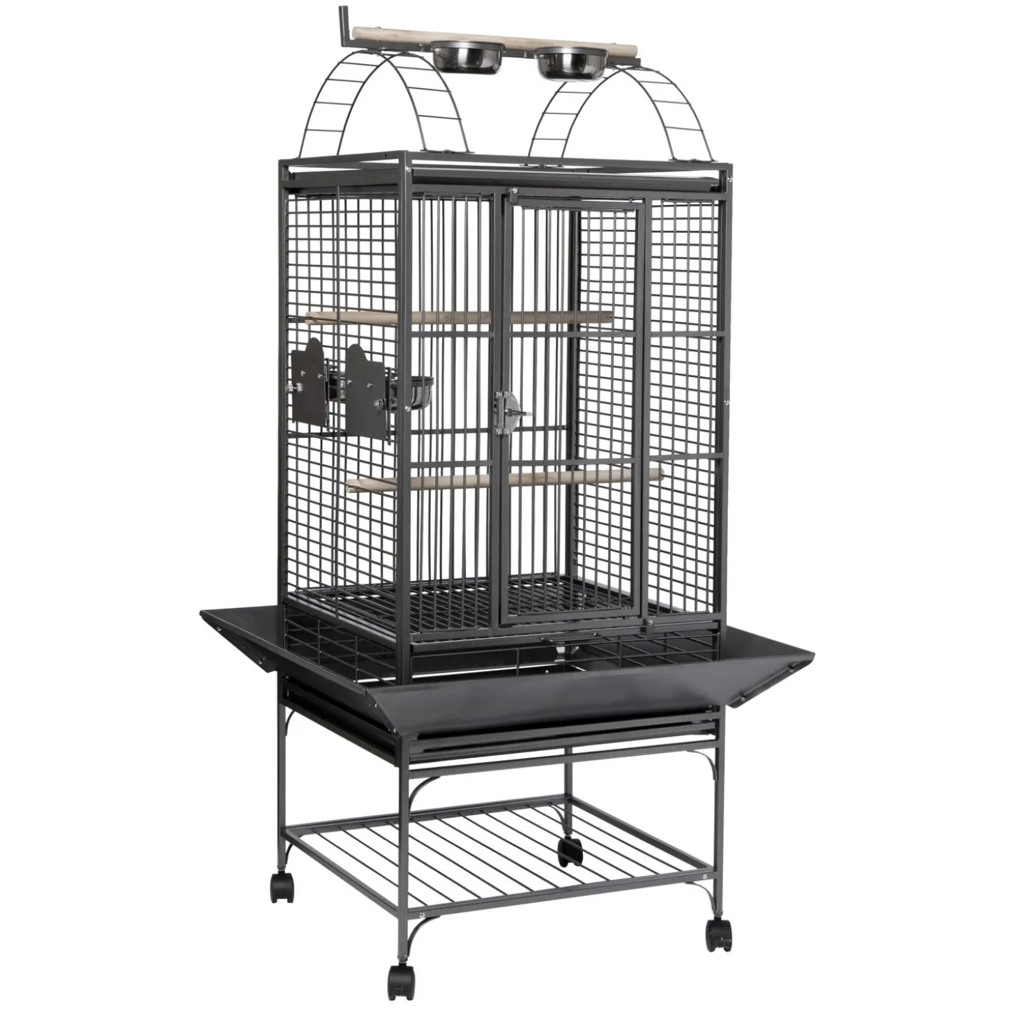 De Villa Sara is een mooie en klassieke papegaaienkooi. Het hok beschikt over vier RVS voederbakjes en twee stevige houten zitstokken voor in de kooi zelf. De kooi is gemakkelijk te verplaatsen door de kunststof rolwielen. De voerbakjes zijn van buitenaf bereikbaar door middel van de draaideurtjes en bevatten stevige sloten. Zo kan je het eten en drinken verversen zonder de kooi open te maken! Het halve maan slot aan de voorzijde van de kooi houdt de deur stevig op zijn plaats en is niet gemakkelijk open te maken door jouw vogel.