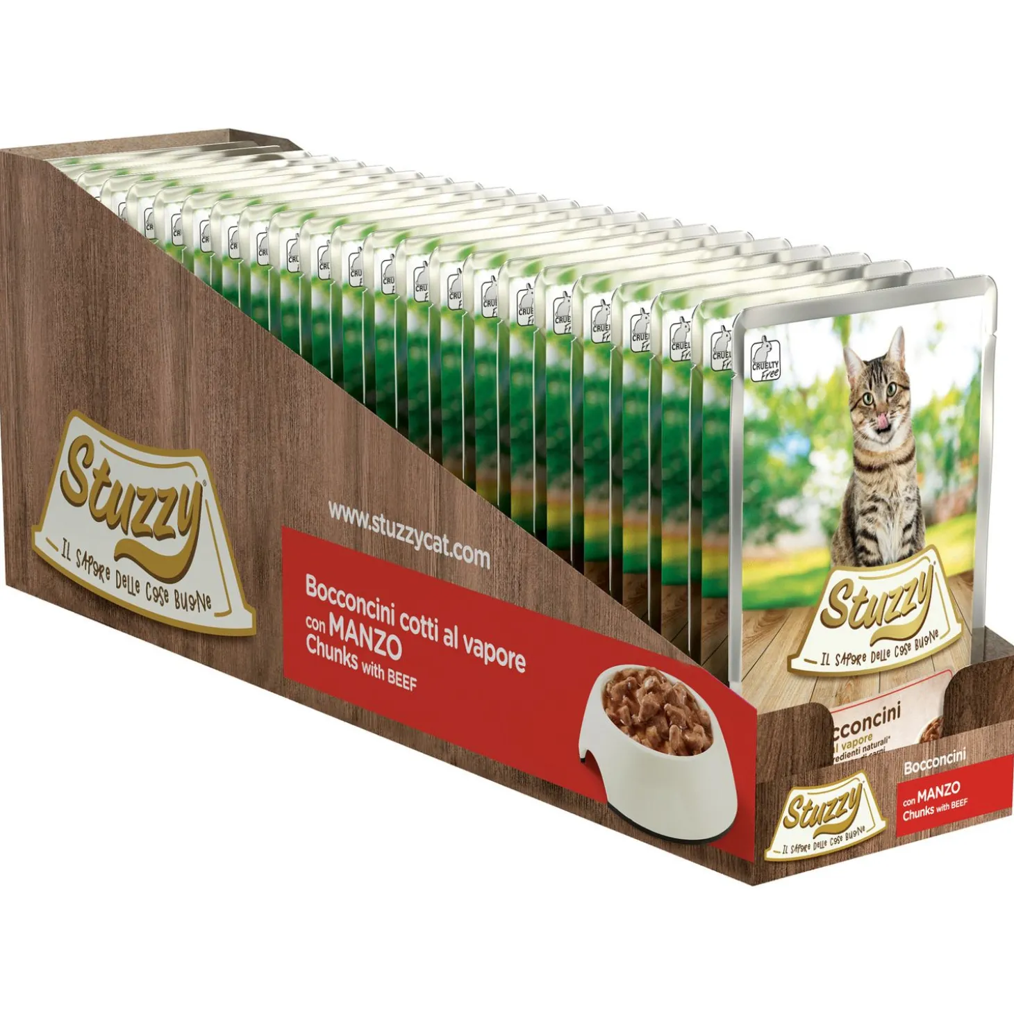 Het Italiaanse Stuzzy maakt al sinds 1986 met veel kennis en kunde honden- en kattenvoer van hoge kwaliteit. Het merk produceert brokken, natvoeding en snacks met een goede prijs-kwaliteitverhouding waarbij de voedingswaarde, smaak en gezondheid van je dier hoog in het vaandel staan. Daarnaast is het productieproces geheel Cruelty Free en heeft Stuzzy een MSC-certificaat voor duurzaam gevangen vis.