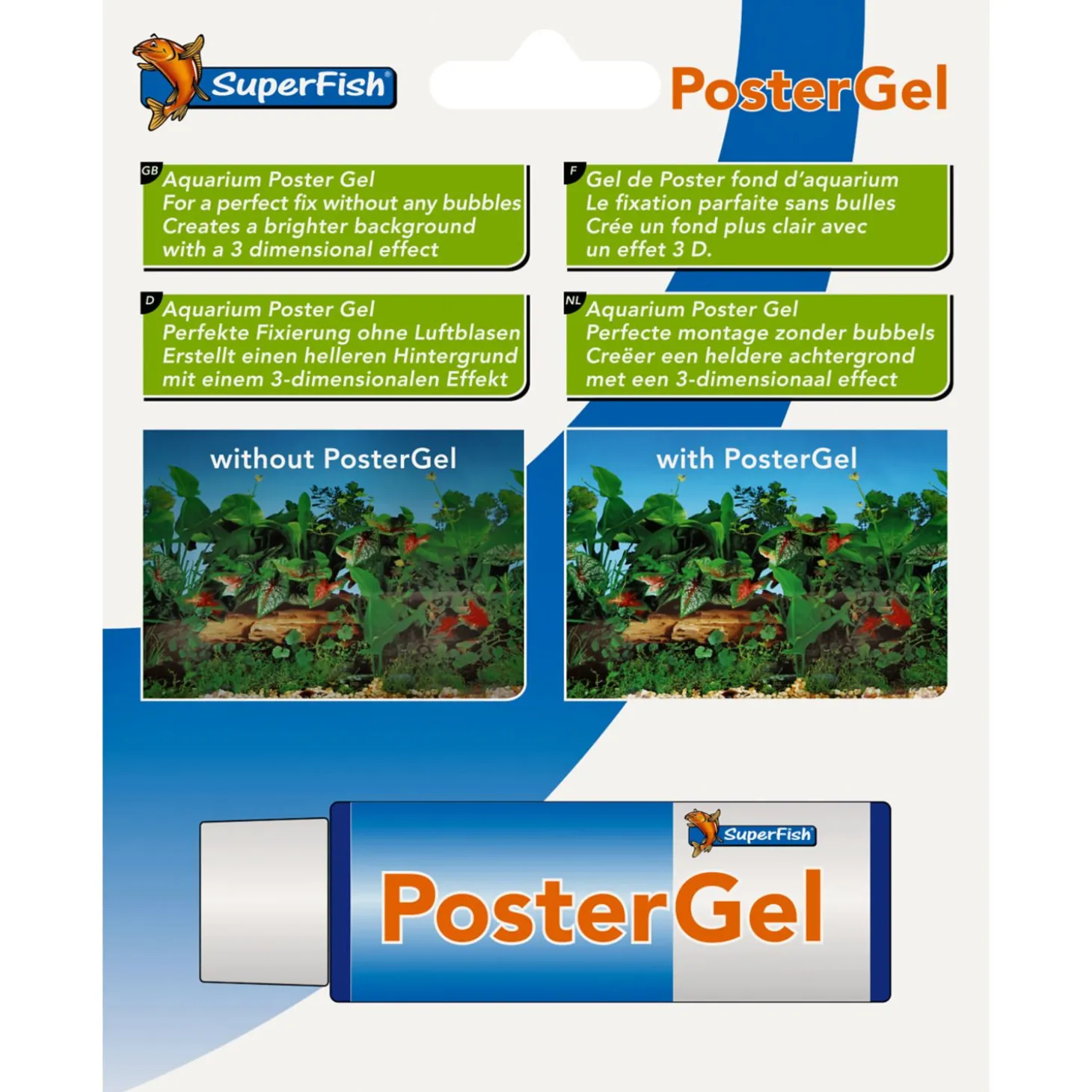 De Poster Gel kan worden gebruikt voor toepassing van de Deco Posters van Superfish. Let op: de Poster Gel is enkel geschikt voor gebruik aan de buitenzijde van het aquarium en de Poster Gel zelf is geen lijm. Je dient hier na nog de poster vast te zetten met tape. wel zal de gel zorgen voor een betere hechting.