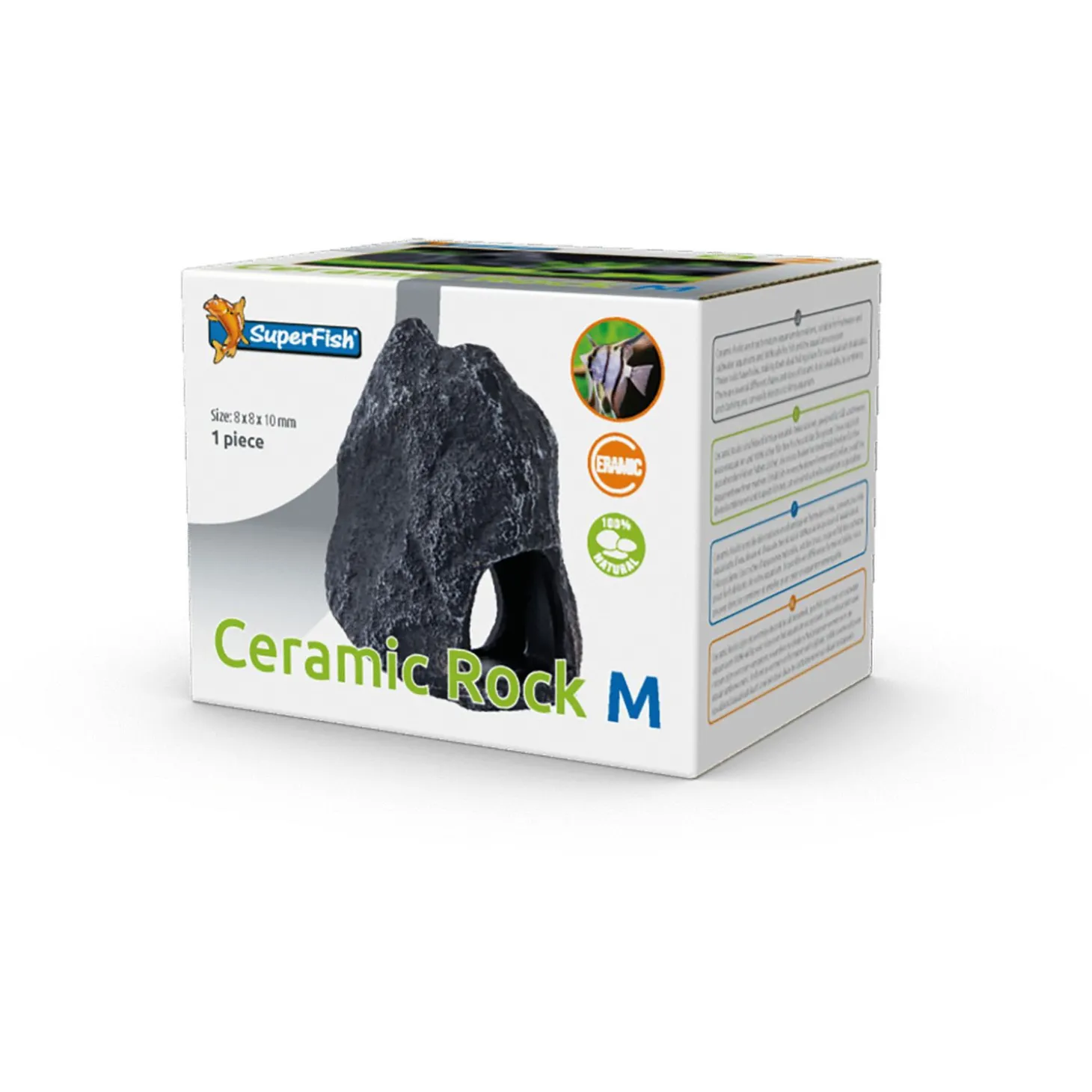 Sommige dieren vinden het fijn om zich te kunnen verstoppen. In een schuilplaats zijn ze veilig voor roofdieren en voelen ze zich op hun gemak. De Ceramic Rock van Superfish is een natuurgetrouwe schuilplaats gemaakt van keramiek, geschikt voor zowel zoet als zout water, waar jouw aquariumdieren zich in kunnen verstoppen. Spoel voor gebruik de Rock goed af.